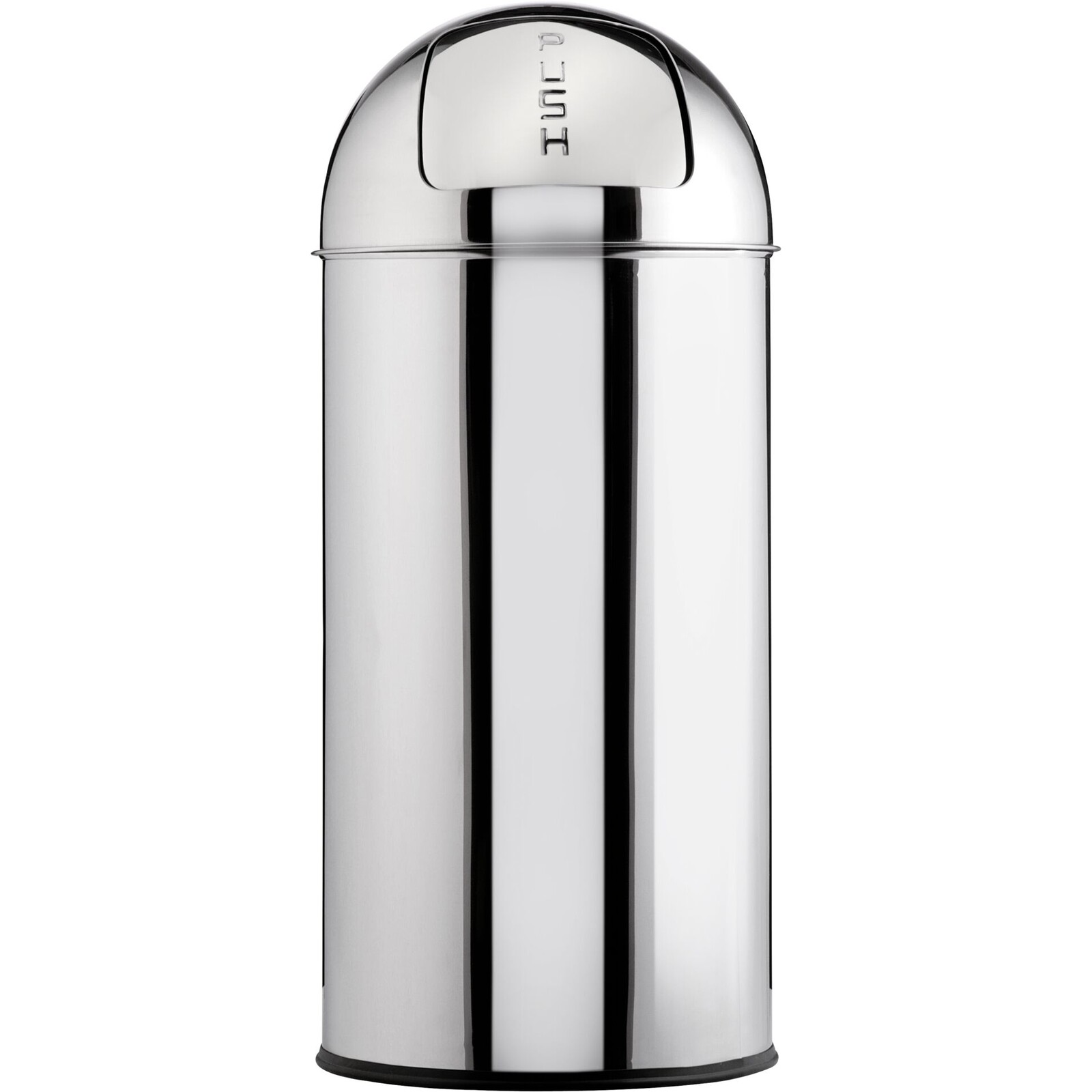 Edelstahl poliert, Inneneimer verzinkt, geeignet für den Innen- und geschützten Außenbereich, flammhemmende Konstruktion. Boden mit verstärktem, rostfreiem Stahlring. Mit Kunststoff-Bodenring außen.