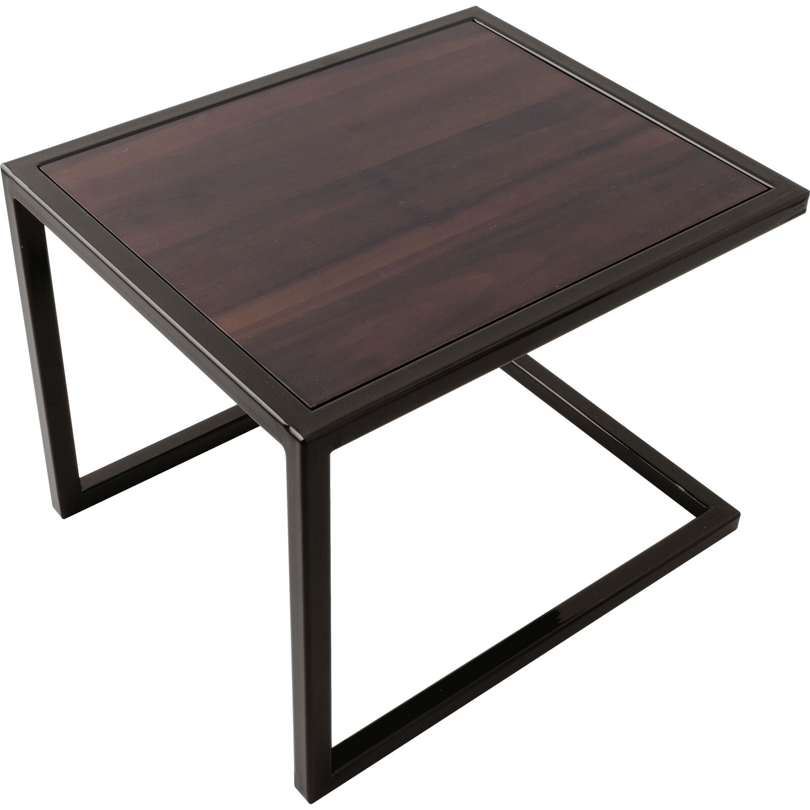 Edelstahl, schwarz beschichtet, Auflage Akazienholz, braun.
