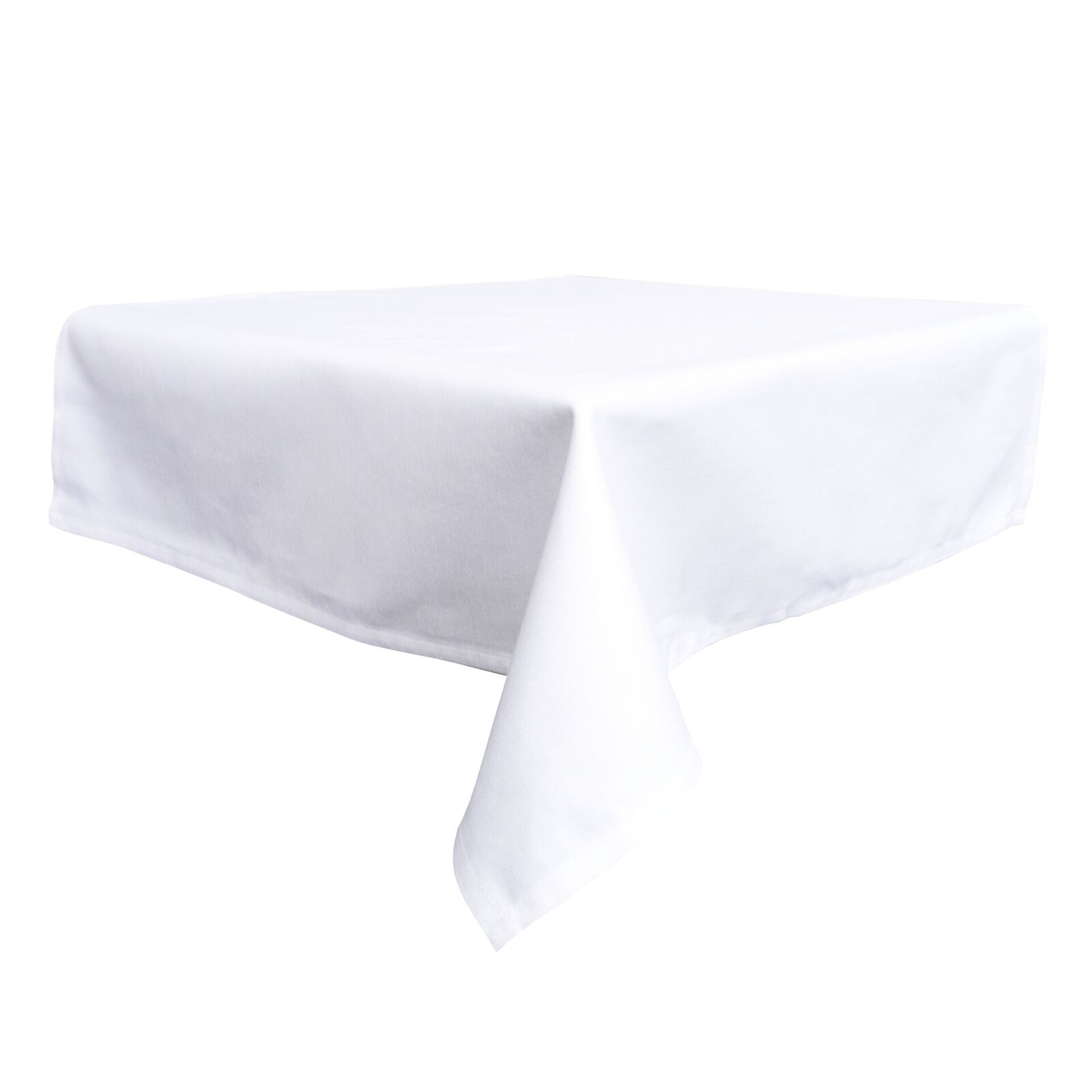 Weiße Damast-Tischdecke, Halbzwirn, 100% Baumwolle, chlor- und kochfest, waschbar bei 95°, 220 g/m².