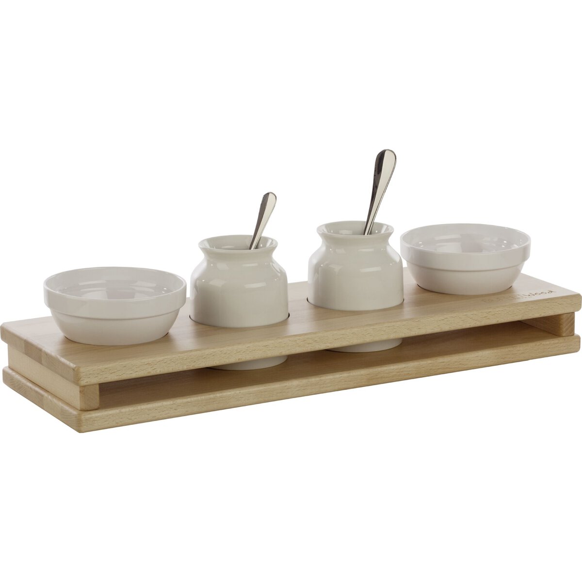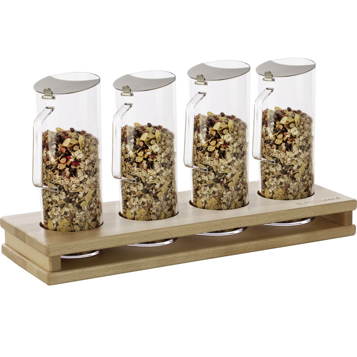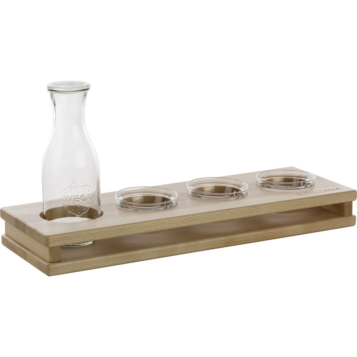 Buche. Passend zu Buffetsystem "Wood". Ecken abgerundet. Mit Gummifüßchen. Plattenstärke: 2 cm.