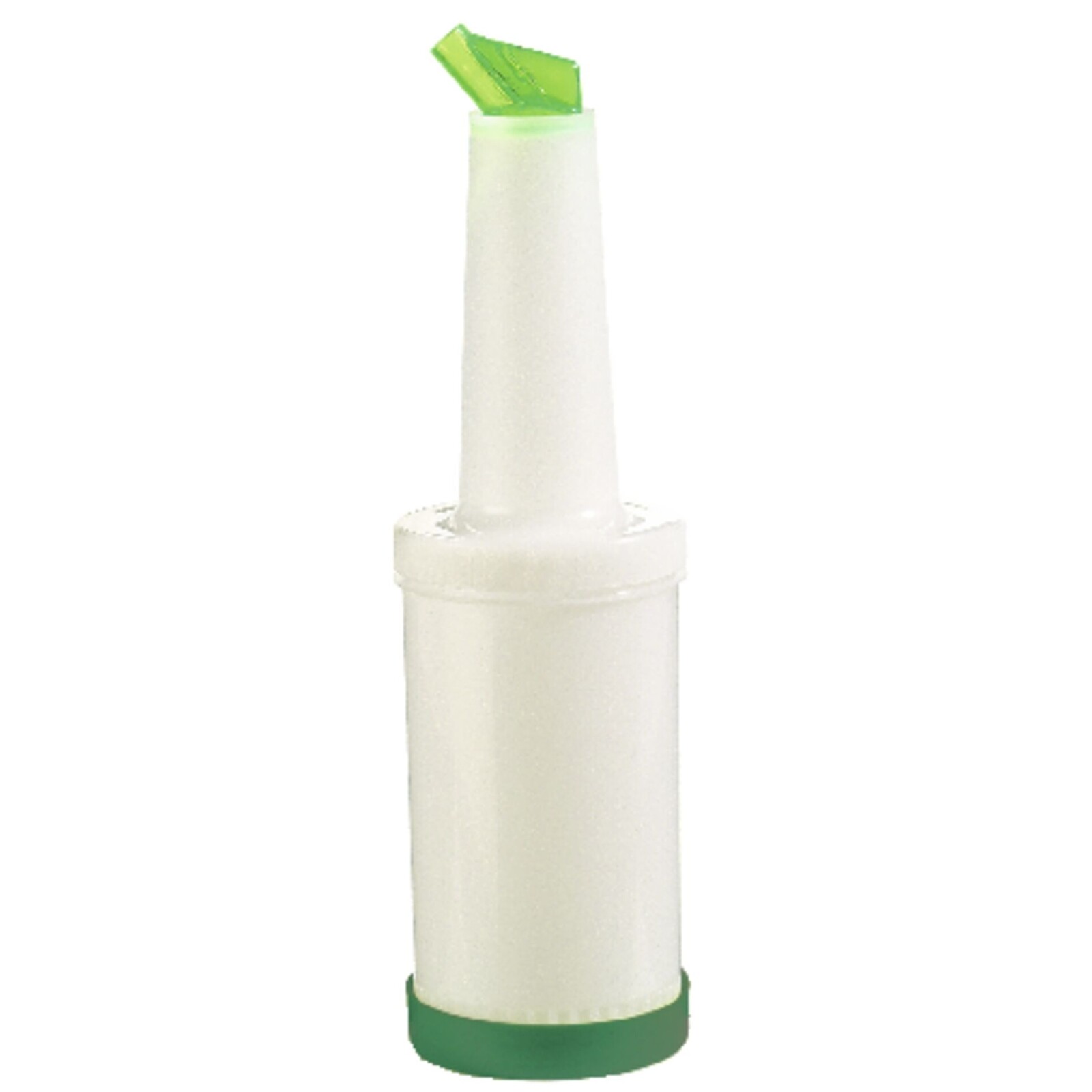 4-tlg. Behälter + Flaschenhals + Schraubdeckel + Ausgießer Ø 11mm mit Luftzufuhr für gezieltes Ausgießen, zum Dosieren und Aufbewahren. PP. Inhalt: ca. 1 Liter.