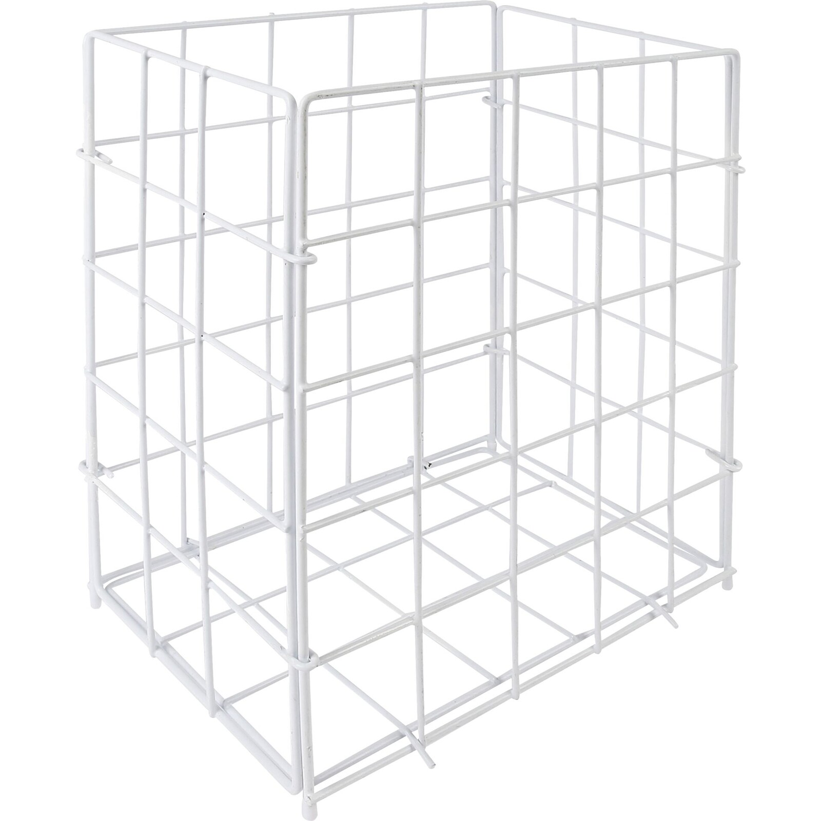 Drahtgitterkorb für Abfallbeutel. Aus weiß-lackiertem Metall gefertigt. Freistehend und klappbar. Für Papierhandtücher und andere Abfälle. Universell einsetzbar für Waschräume, Toiletten, Arbeitsbereiche, Industrie.