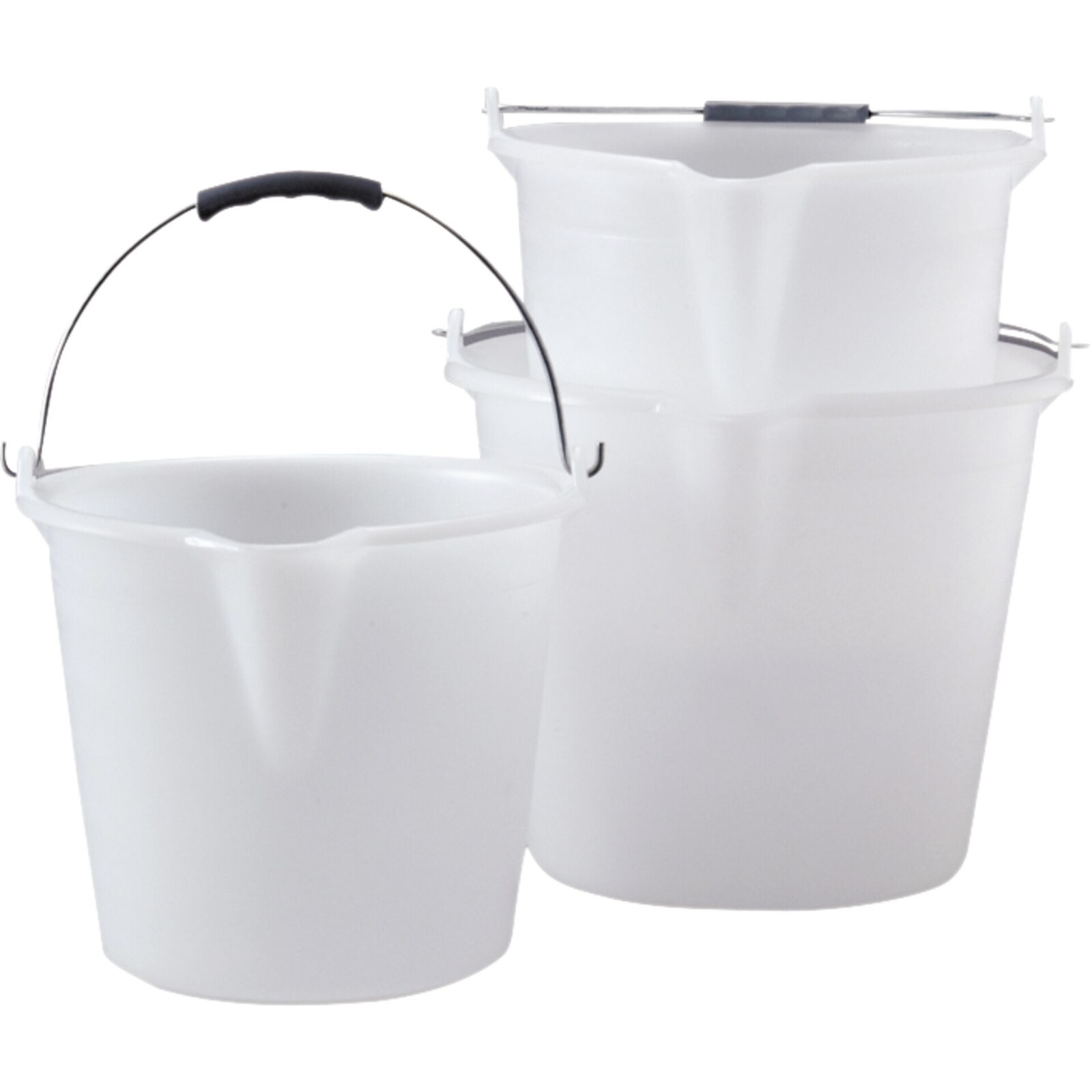 NPE (Niederdruck-Polyethylen), weiß-natur. Mit Ausguss, Metallbügel und Literskala (innen). Temperaturbereich -40°C bis +80°C. Lebensmittelecht. Nicht geeignet für stark säure- und laugenhaltige Produkte. Nicht spülmaschinengeeignet.
