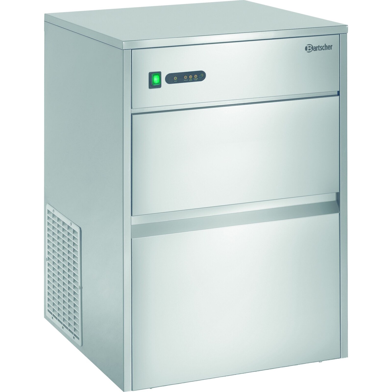 Edelstahl. Ausführung Eiswürfel: Kegelform (Hohlkegel). Produktion max. 25 kg/24 Std. Der Vorratsbehälter umfasst ca. 7 kg. Durch die Luftkühlung halten Sie bitte zu allen Seiten einen Abstand von ca. 10 cm! Gewicht: 30kg. Festwasseranschluss 3/4 Zoll, Wasserablauf Ø 21 mm. Kühlmittel R290.