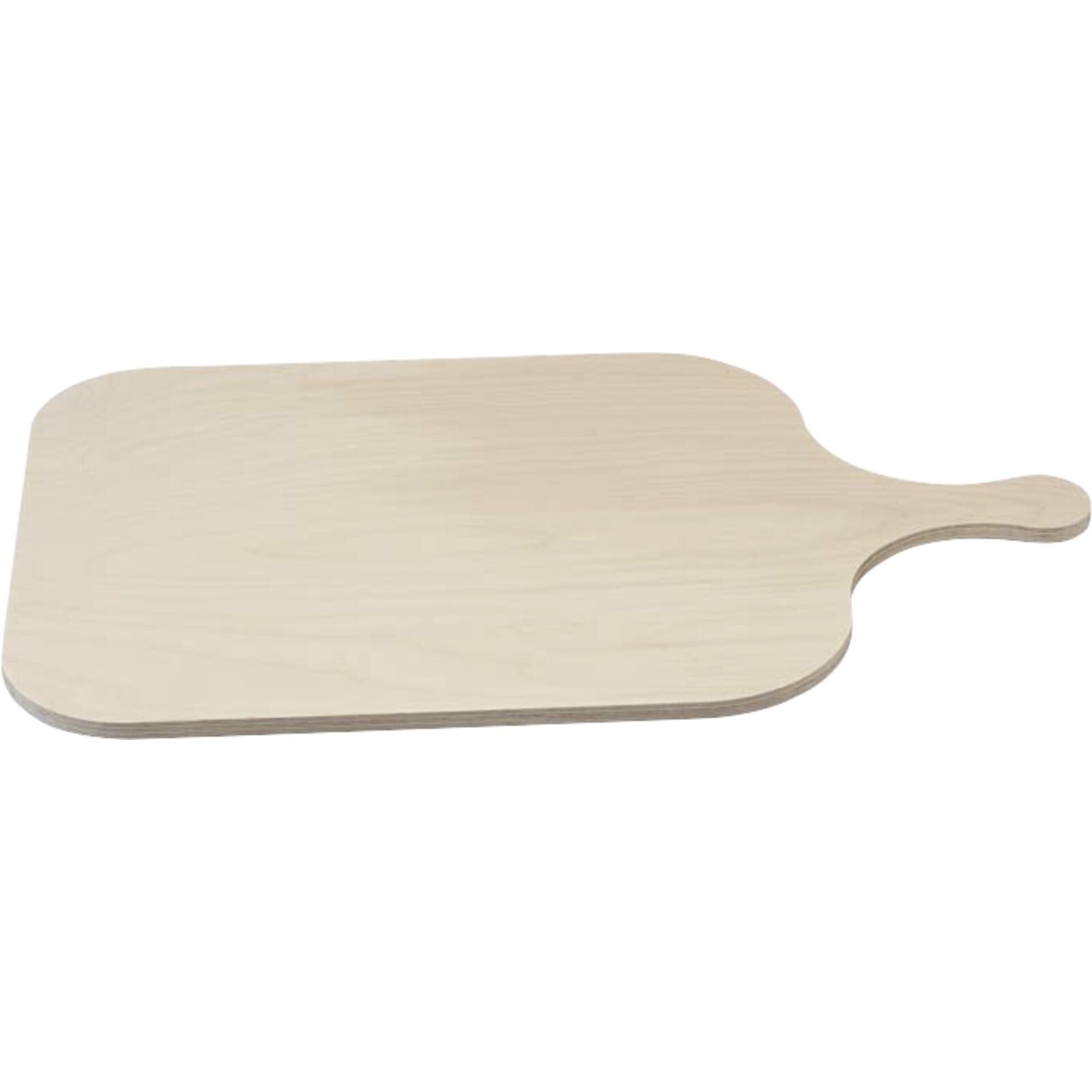 Birkenmultiplex (Holz unbehandelt). Ecken abgerundet. Länge ohne Griff 38 cm. Nicht spülmaschinengeeignet!