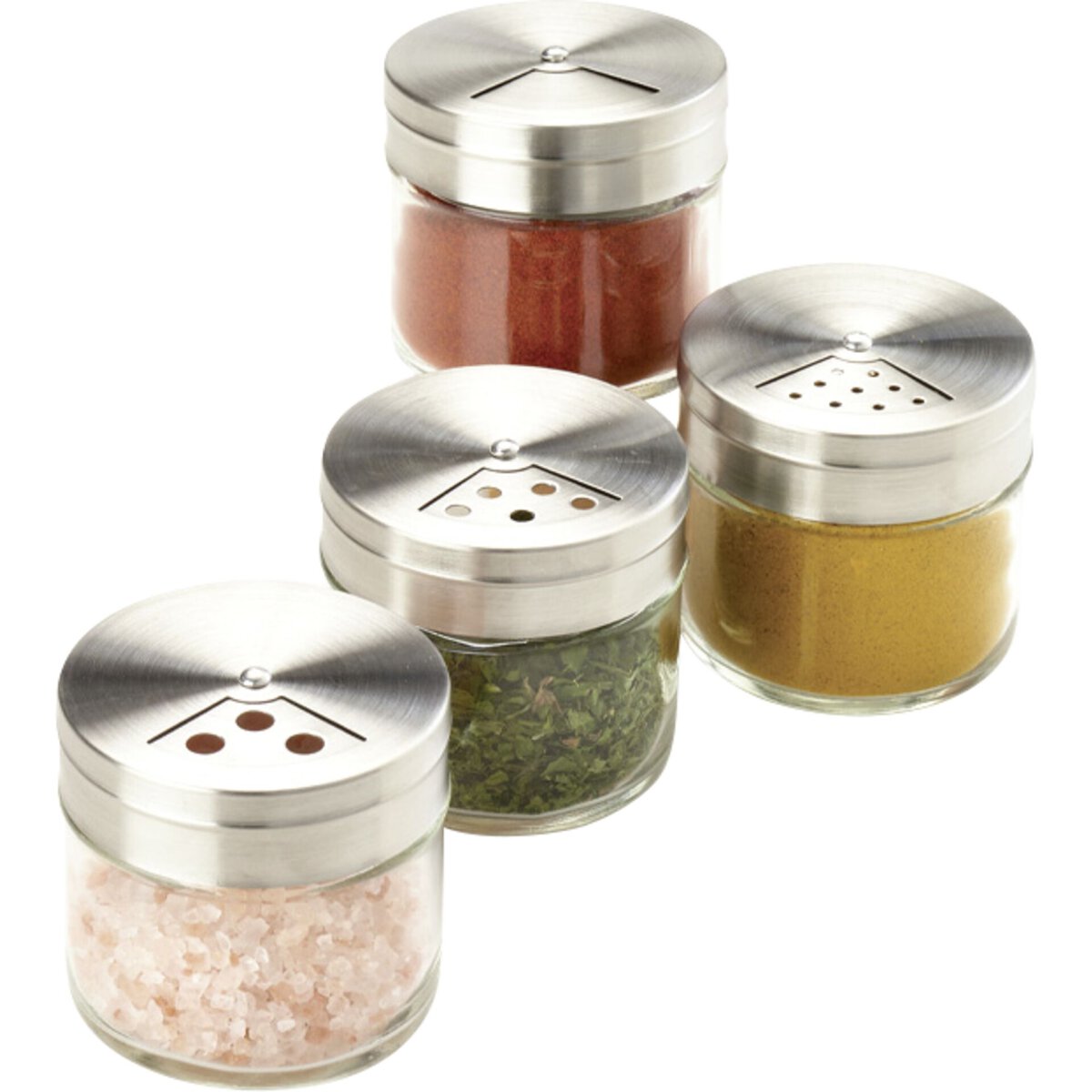 Glas/Deckel Edelstahl. Drehverschluss mit Löchern in drei verschiedenen Größen.