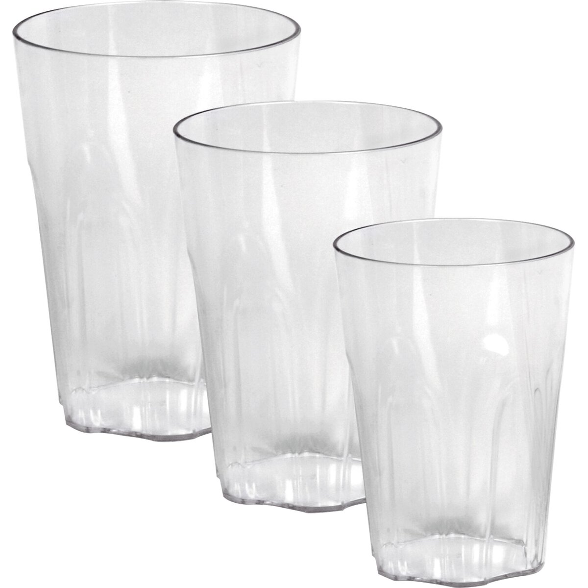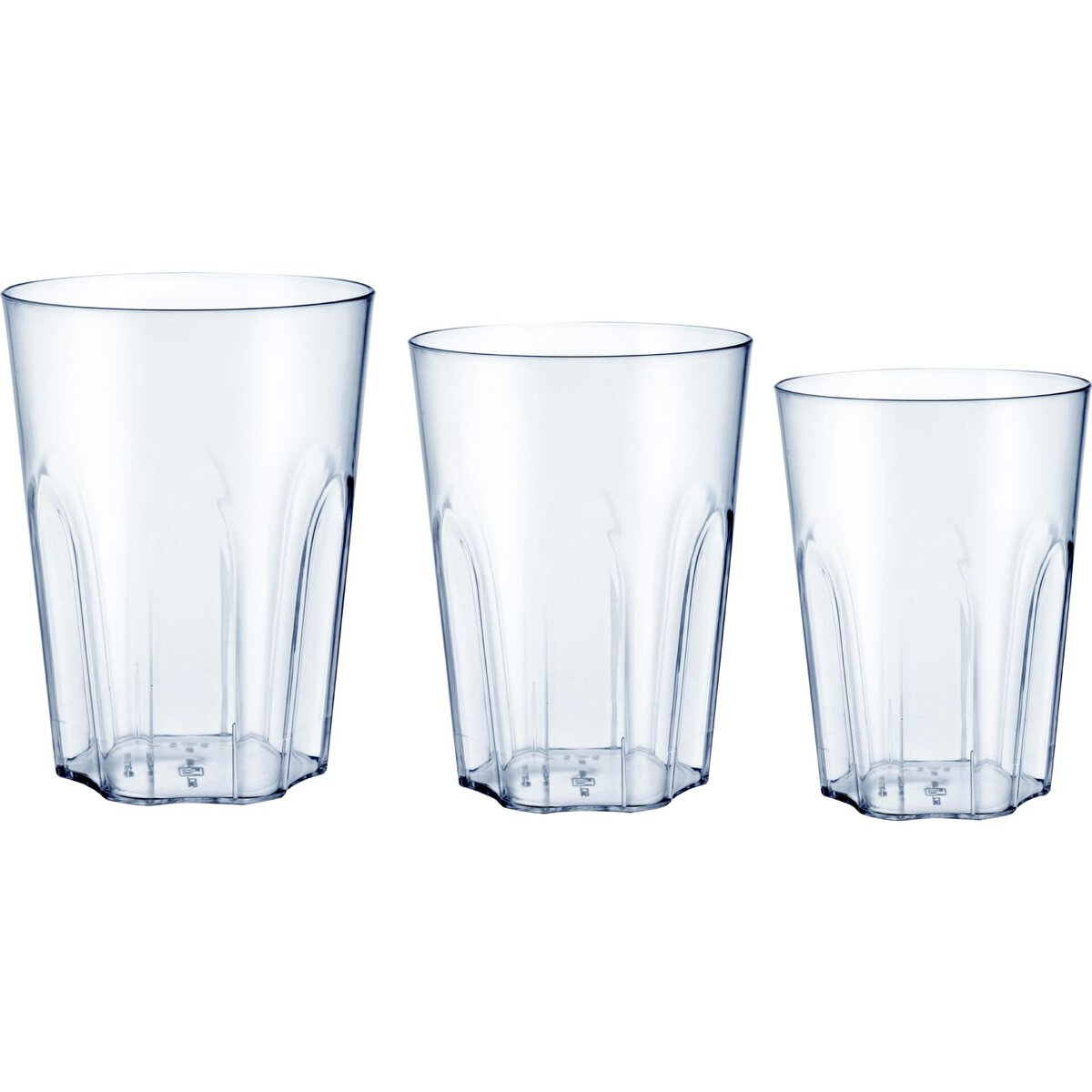 Unzerbrechliche Gläser aus Polycarbonat. Verwendbar bei -40° bis +99°. Glasähnliche Optik, stapelbar und spülmaschinengeeignet.