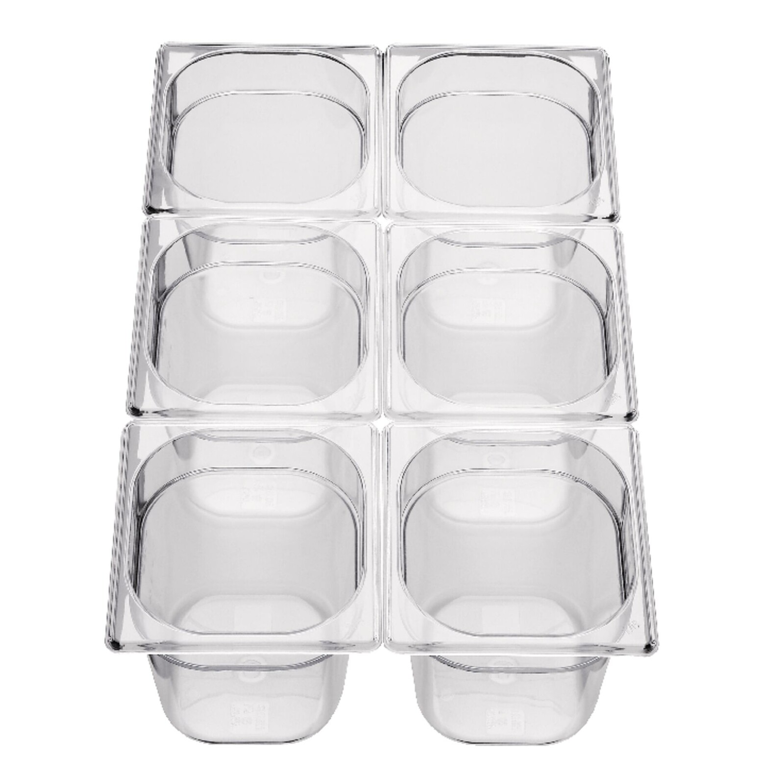 Polycarbonat, transparent, stapelbar, bruchsicher, mit Skalierung. Einsetzbar von -40°C bis +100°C. Spülmaschinen- und mikrowellengeeignet. Passende Deckel bitte separat mitbestellen.