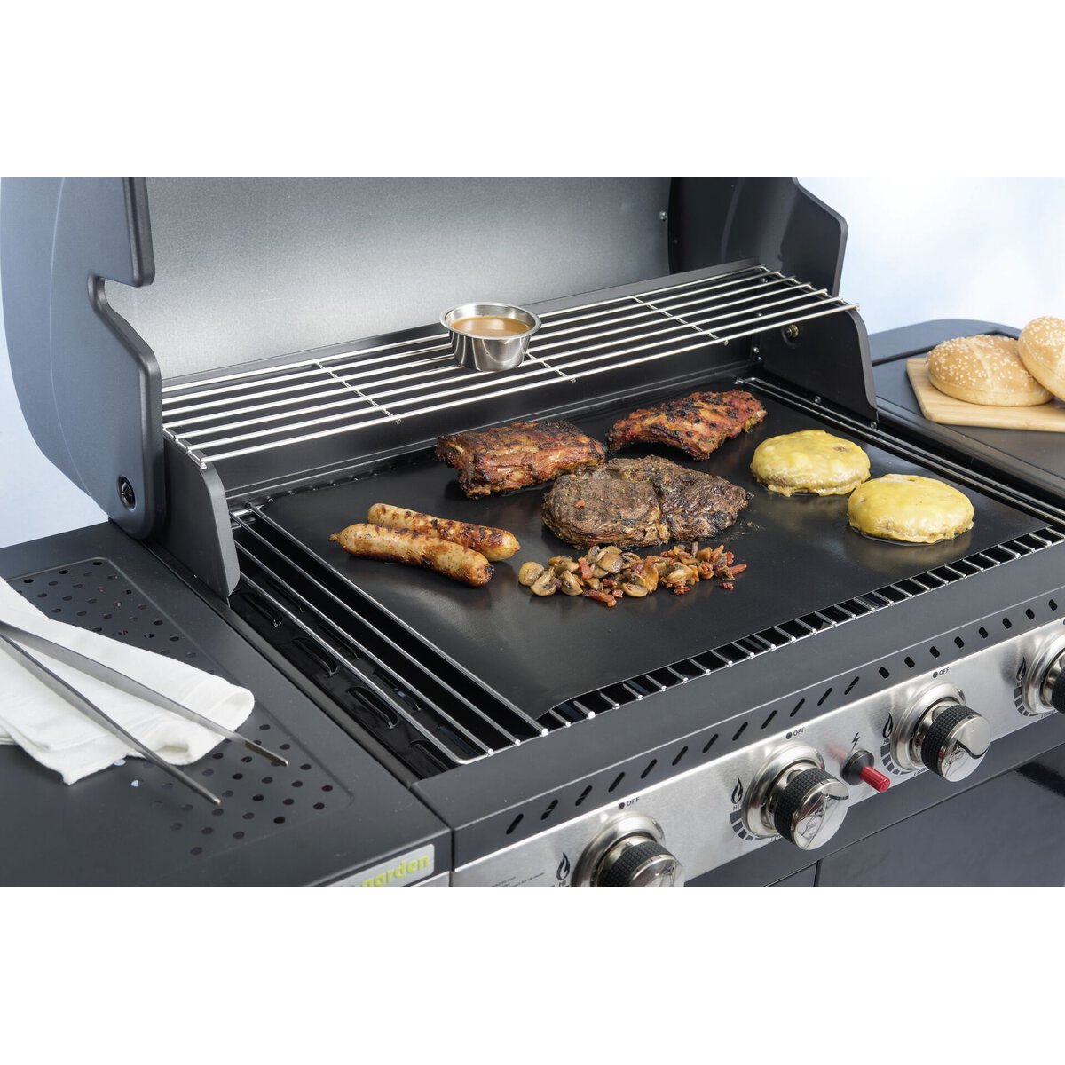• Hält das Grillgut zart, saftig und schmackhaft