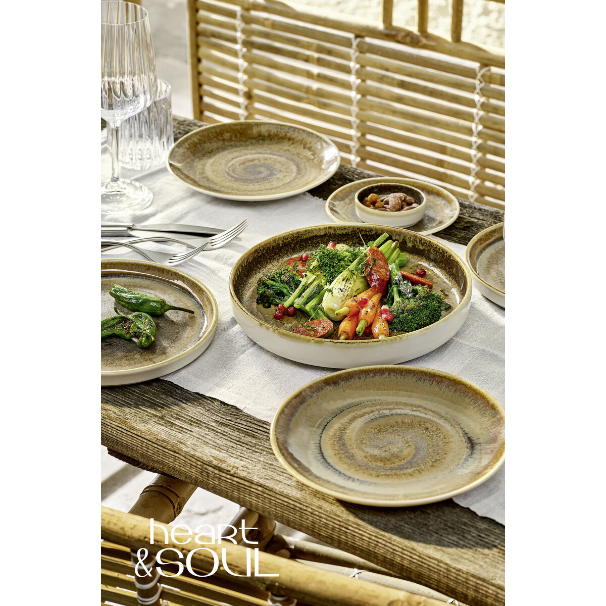 6 x "Heart & Soul" Cumin Teller Coup flach Ø21cm