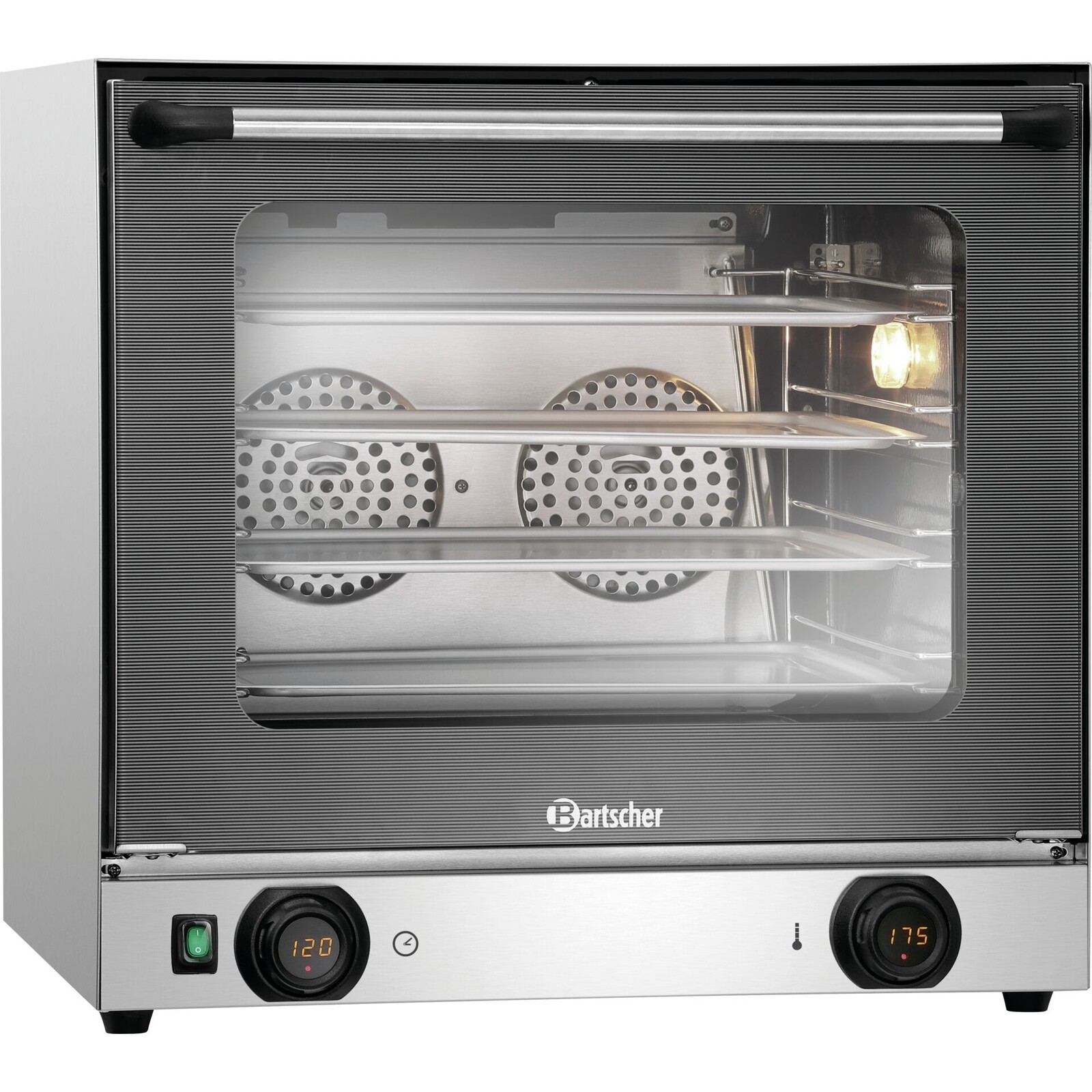 Gehäuse aus Edelstahl. Inkl. 4 Blechen. Garraum emailiert. Temperaturbereich: 50-300° C, Knebel mit Digital-Anzeige für exakte Zeit u. Temperatureinstellung, Zeiteinstellung: 0-120 Min, Tür mit Doppelscheibe, mit 2 Motoren, Einschübe: 4 ( 43,3x33,3 cm). Passende Bleche Art. 11444 u. 11445.