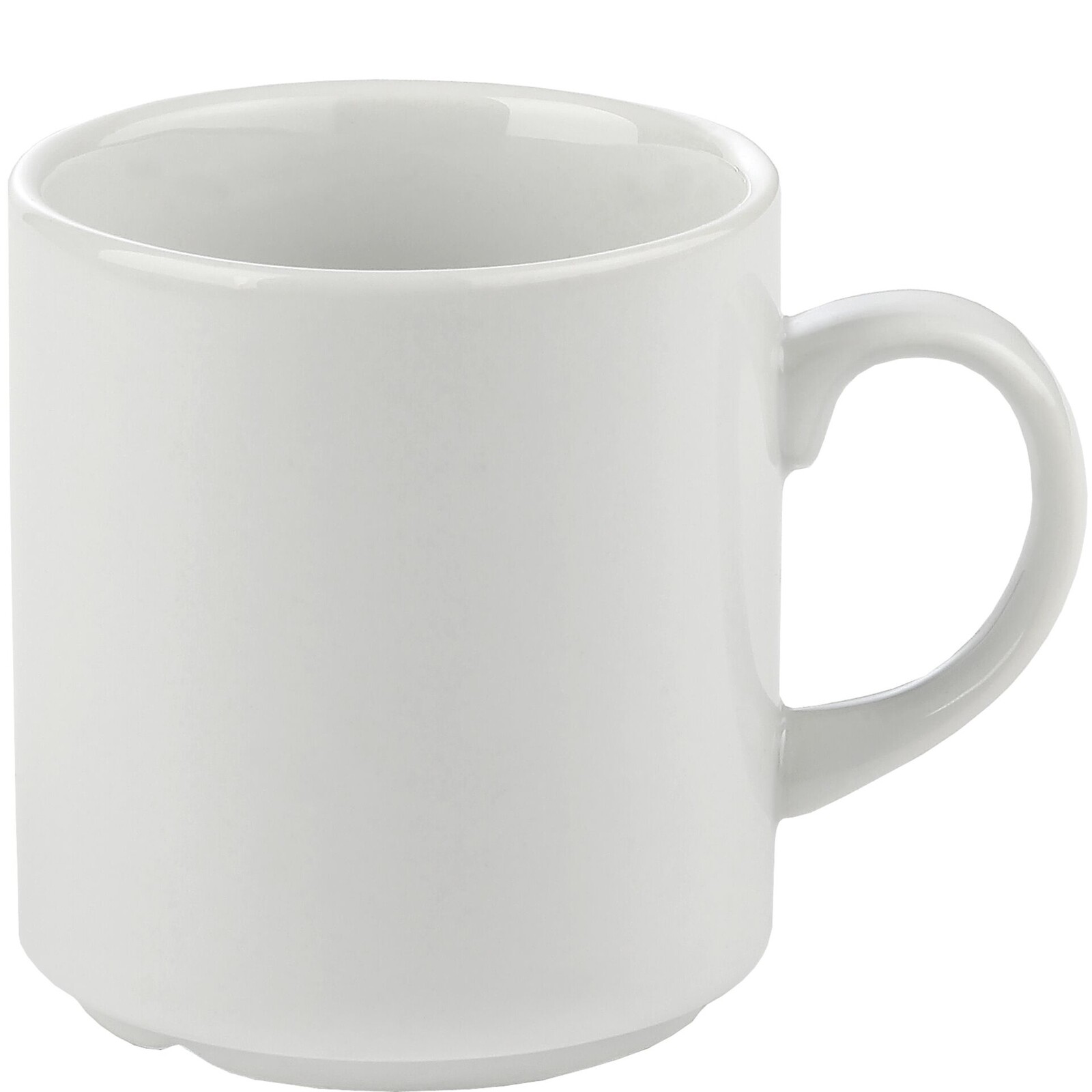 Porzellan, weiß. Mit Henkel. Stapelbar. Inhalt: 0,29 L.