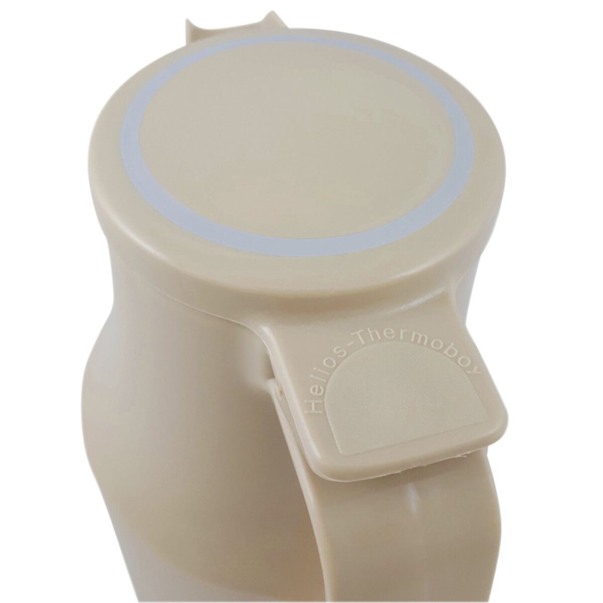 Helios Kunststoff-Isolierkanne mit Klappdeckelverschluss zur Einhandbedienung. Profiausführung. Sehr gute Warmhaltung durch vakuumierten und versilberten Q100-Qualitätsglaseinsatz. Das Modell ist durch die Santoprene-Versiegelung spülmaschinengeeignet. Inhalt ca. 0,3 l.