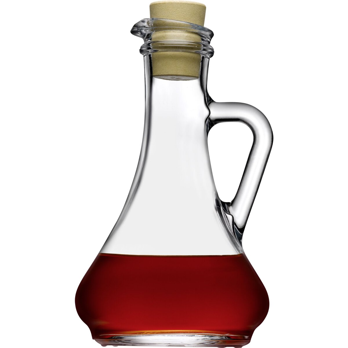 Glas. Mit Kunststoffkorken. Inhalt: 26 cl. Ø unten: 7,5 cm, Höhe: 15,7 cm.