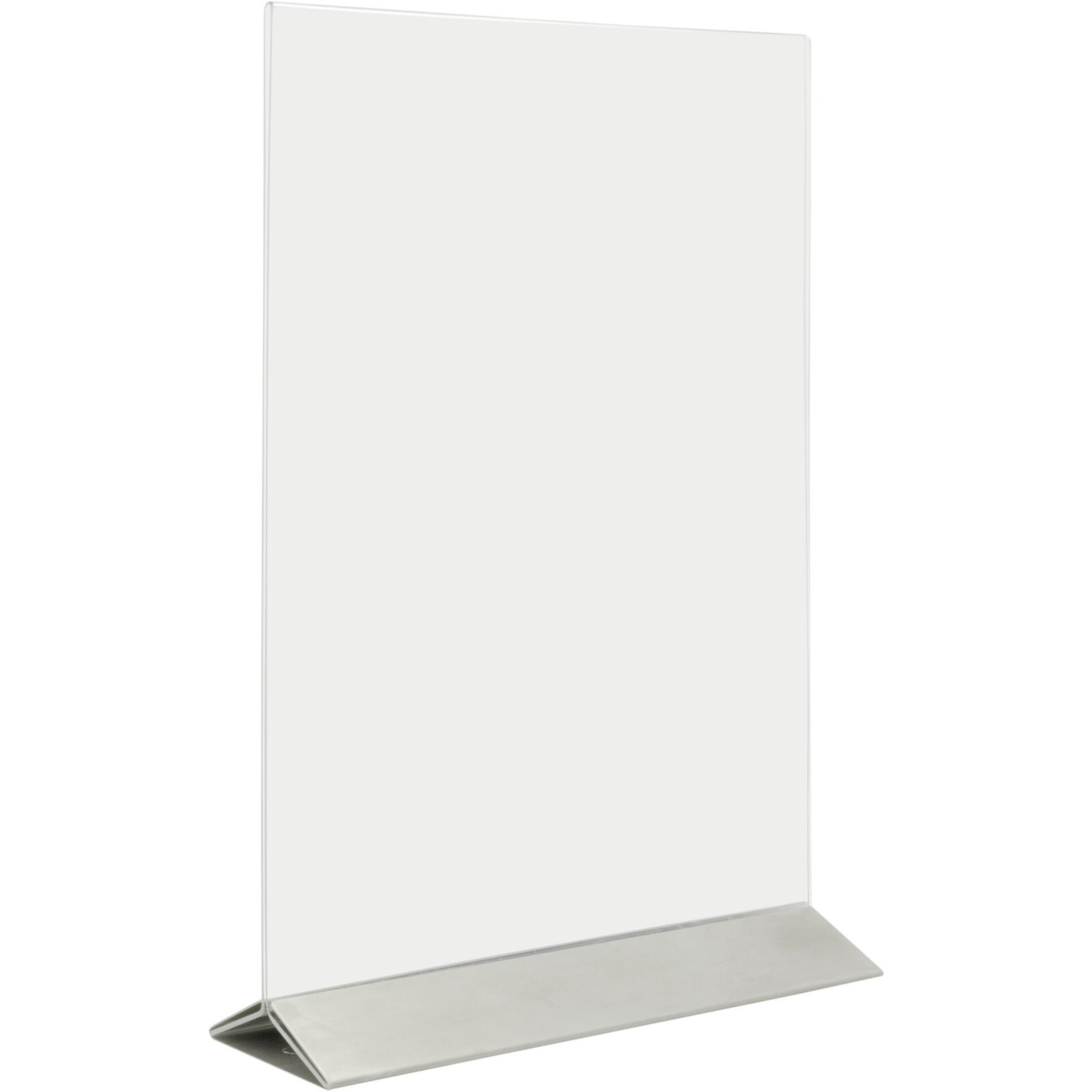 Acryl, transparent. Mit Edelstahlfuß. Für Papiereinschub.