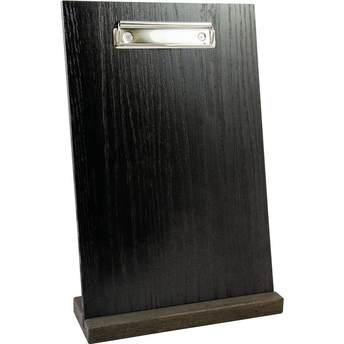 Holz. Mit Klemmleiste. Abgerundete Ecken. Mit dem Speisenkarten-Klemmbrett kann ganz einfach die Tageskarte oder Ihr speziell auf den Gast abgestimmtes Menü präsentiert werden. Die passende Klemmbretthalterung bitte separat dazu bestellen.