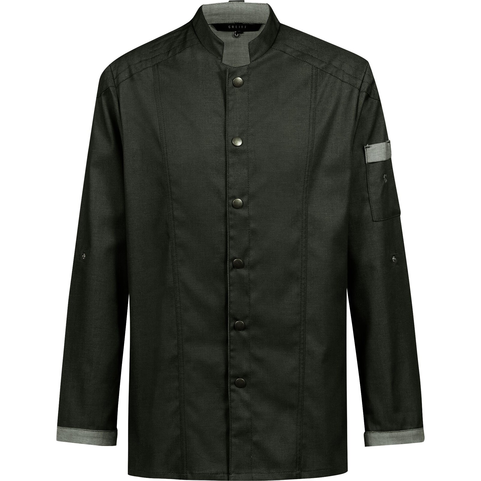 Farbe: grün. Denimoptik. 52% Baumwolle, 45% Polyester, 3% Elastolefin, 240 g/m². Regular fit. Elastisch, Stretch. Metalldruckknöpfe. Schulterpasse mit Ziernähten. Krempelarm. Armtasche mit Logo. Lüftungslöcher. Passe im Rücken. Die gesamte Baumwolle ist Fairtrade zertifiziert. Somit auch Produktion im Fairtrade auditierten Betrieb. Waschen: Normalwaschgang 60°C, Bleichen: nicht bleichen, Trocknen: Trocknen im Tumbler, niedrige Temperatur, 60°C, normaler Trocknungsprozess, Bügeln: Bügeln mit einer Höchsttemperatur der Bügeleisensohle von 150°C, prof. Textilpflege: professionelle Trockenreinigung, normaler Prozess.