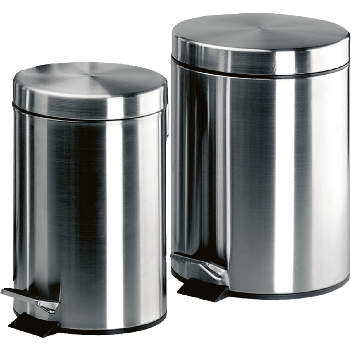 Edelstahl 18/10, poliert. Mit Fußpedal. Mit Kunststoff-Bodenring. Herausnehmbarer Kunststoff-Inneneimer mit Henkel.
