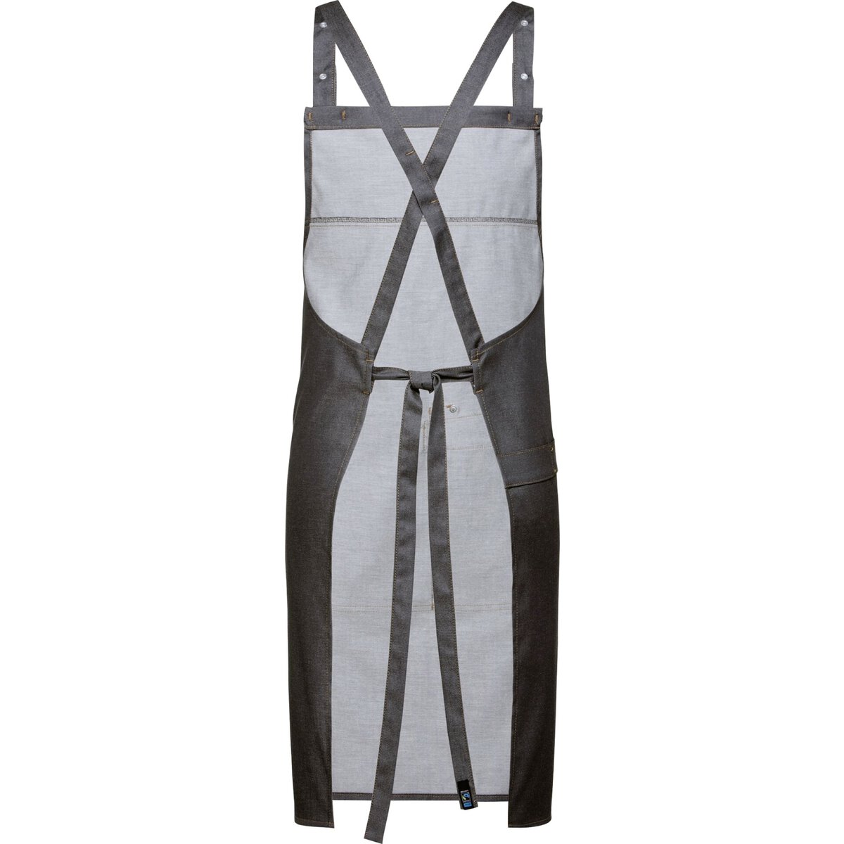 Denimoptik, Breite/Länge 77x85cm, aufgesetzte Taschen, verstellbares Latzband, Geschirrtuch-Schlaufe, Onesize. Gewebe: 52% Baumwolle, 45% Polyester, 3 % Elastolefin.