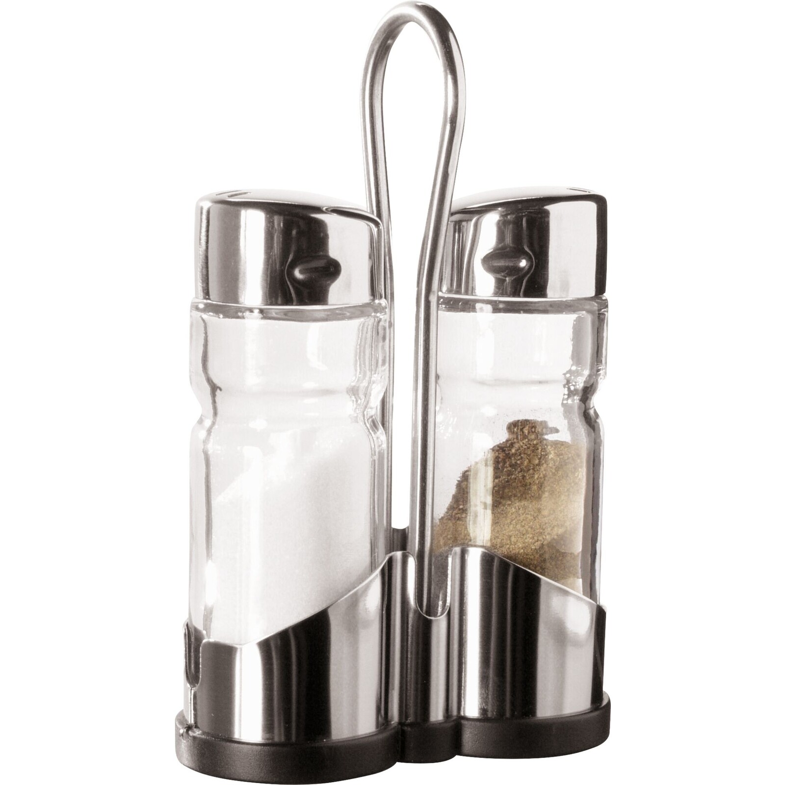 Glasflaschen mit Deckel Edelstahl 18/8. 3tlg. (Salz und Pfeffer).