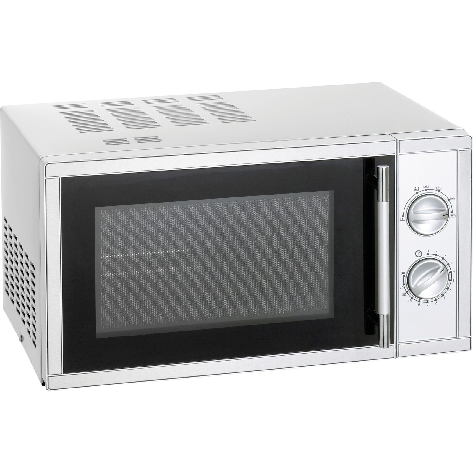 Gehäuse und Garraum aus Edelstahl, Innenraum BxTxH in cm 31,5x29,0x20,0 cm, manuelle Zeiteinstellung bis 30 Minuten. Funktionen: auftauen, erhitzen, 6 Leistungsstufen. Glasdrehteller (Ø27,0 cm).