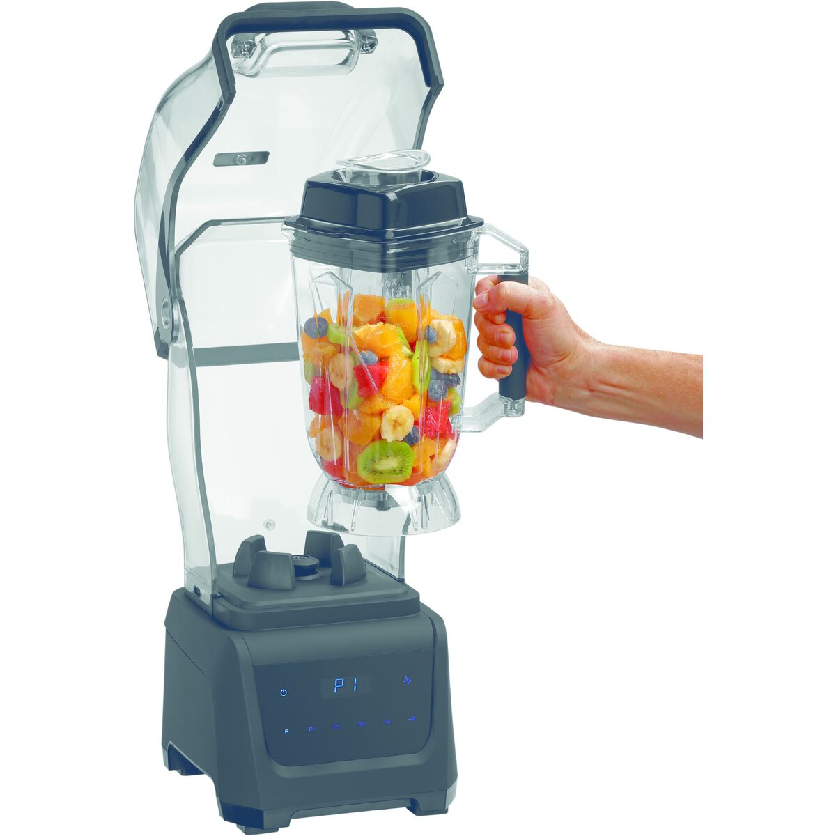 Leistungsstark und leise: Die leistungsstarken 28.000 Umdrehungen können ganz individuell und je nach Bedarf auf 3 Programme und 9 Geschwindigkeitsstufen programmiert und genutzt werden. Sei es für Suppen, Drinks, Shakes, Desserts oder auch Crushed Ice. Durch die Messer aus Edelstahl, ist das Gerät problemlos zum Hacken, Mixen, Pürieren, Shaken und Zerkleinern ausgelegt. Die transparente Abdeckhaube ermöglicht einen bedenkenlosen Einsatz im Thekenbereich.