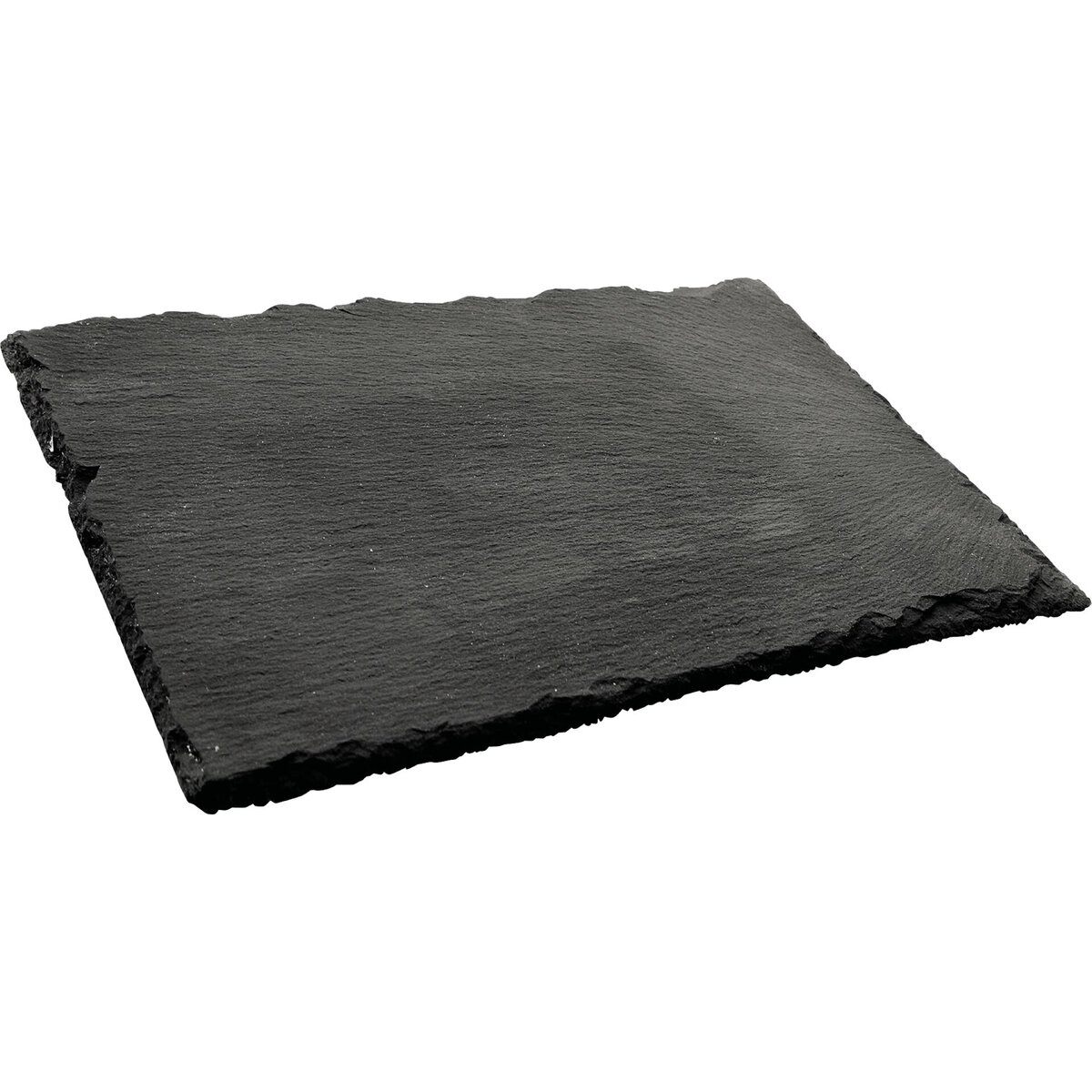 Naturschiefer. Mit Antirutsch-Füßchen. Versiegelt mit lebensmittelechtem Speziallack. Fett- und wasserdichte Oberfläche. Gebrochene Kante. Hervorragende Kältespeicherung durch Naturschiefer. Nicht spülmaschinengeeignet!