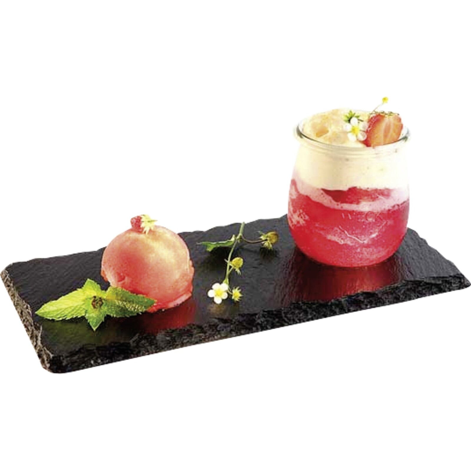 Naturschiefer. Mit einer Aussparung Ø 5,5 cm. Mit lebensmittelechtem Speziallack versiegelt. Fett- und wasserdichte Oberfläche.