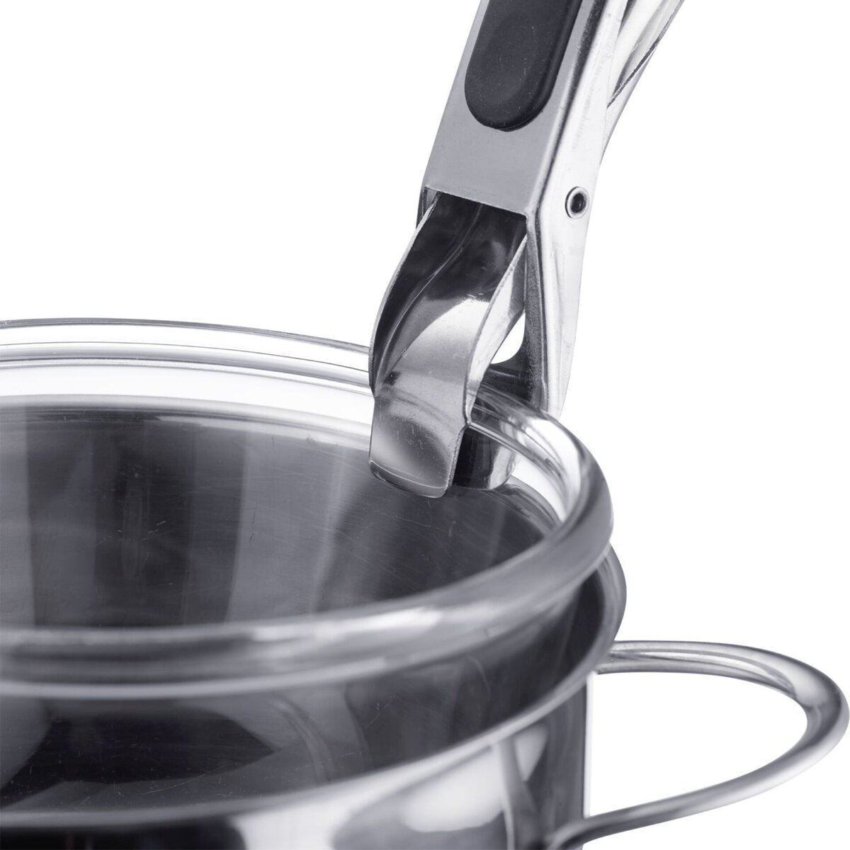 Edelstahl/Silikon. Schützt die Finger vor Verbrennungen. Ideal um Pizzableche und Back-/Auflaufformen im Ofen vorzuziehen, um heiße Teller zu bewegen etc. Nicht spülmaschinengeeignet.