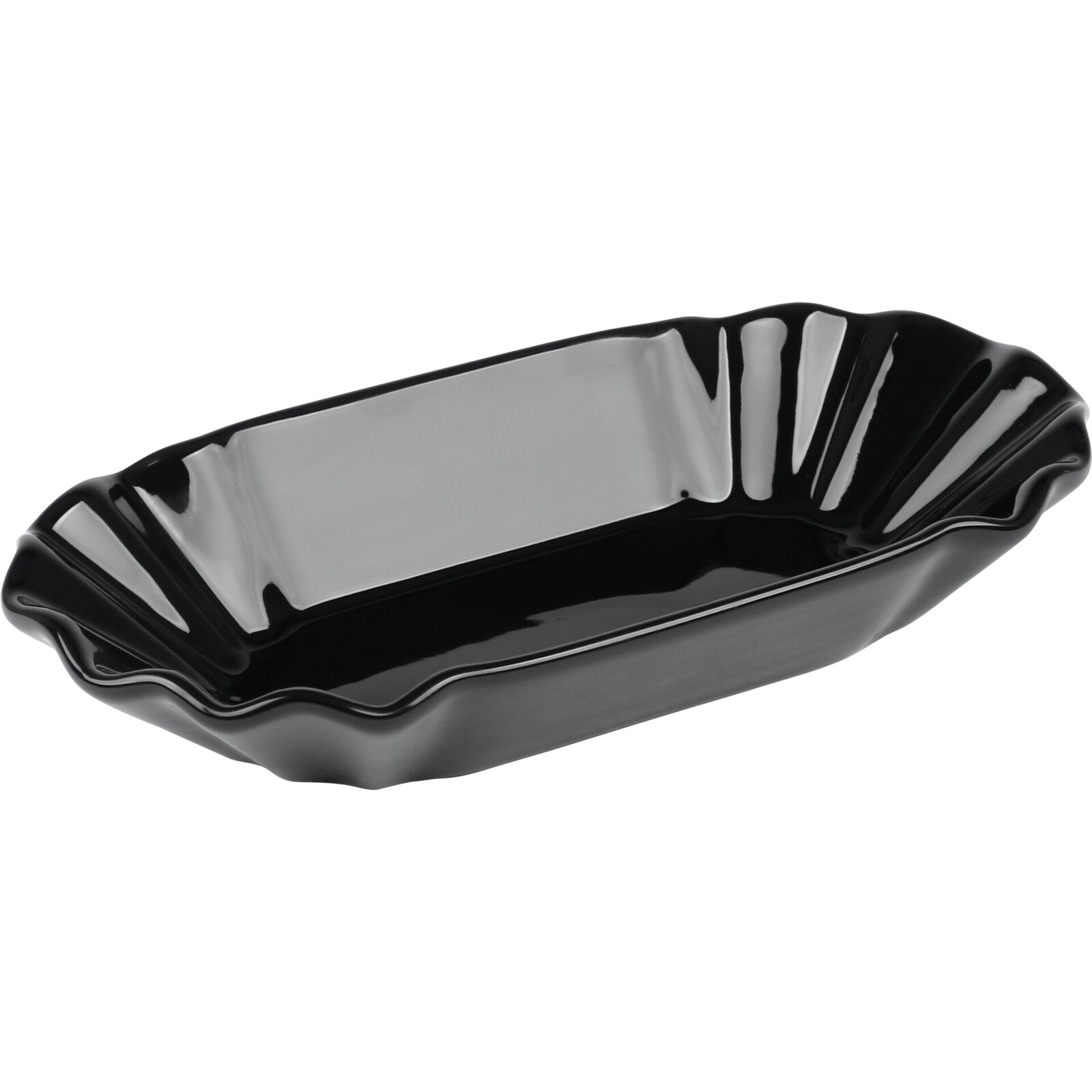 Porzellan, schwarz. In typischer Pommesschalen-Form.