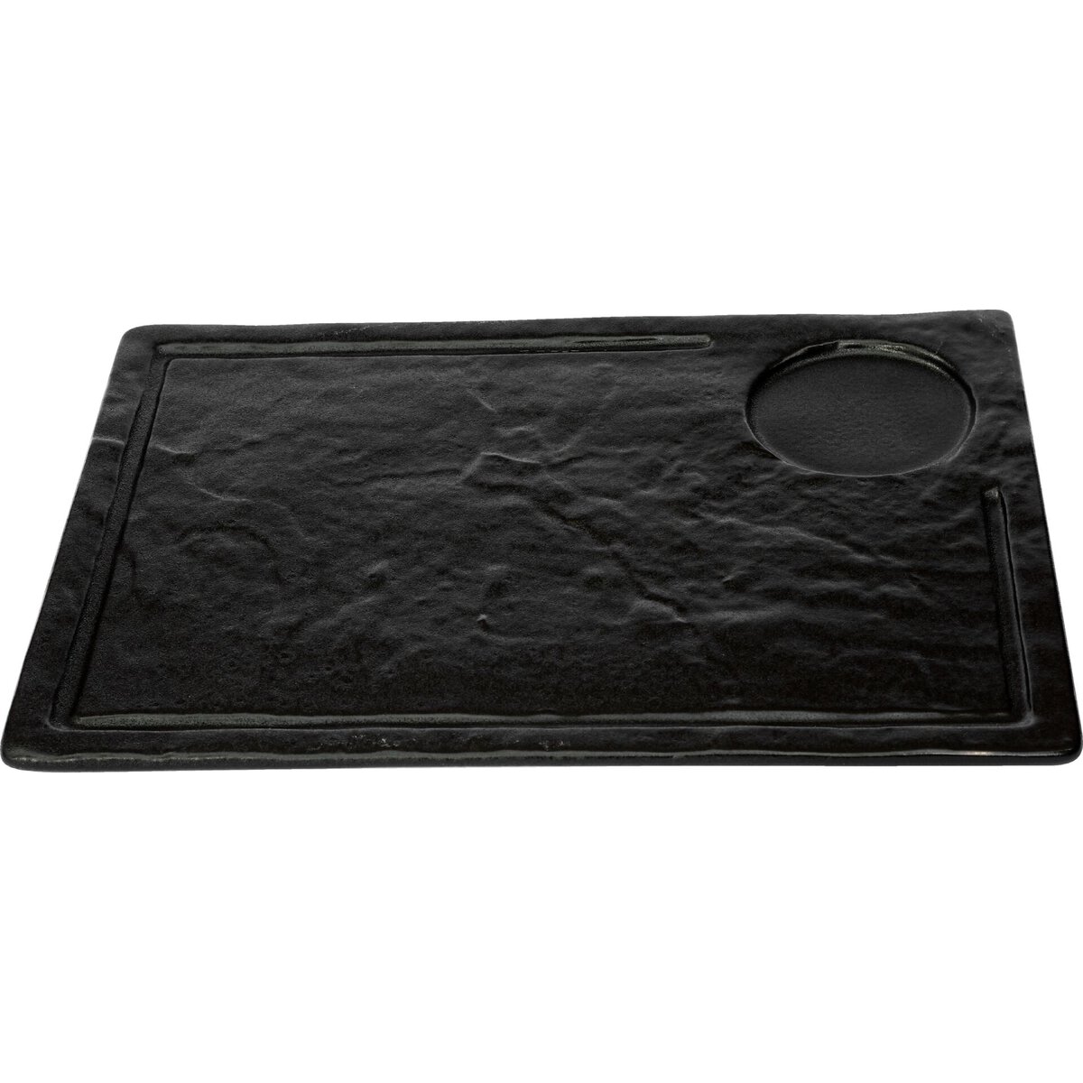 • Platte inkl. Saftrille und Aussparung Ø 7,7cm für Dip-Schalen o.Ä.