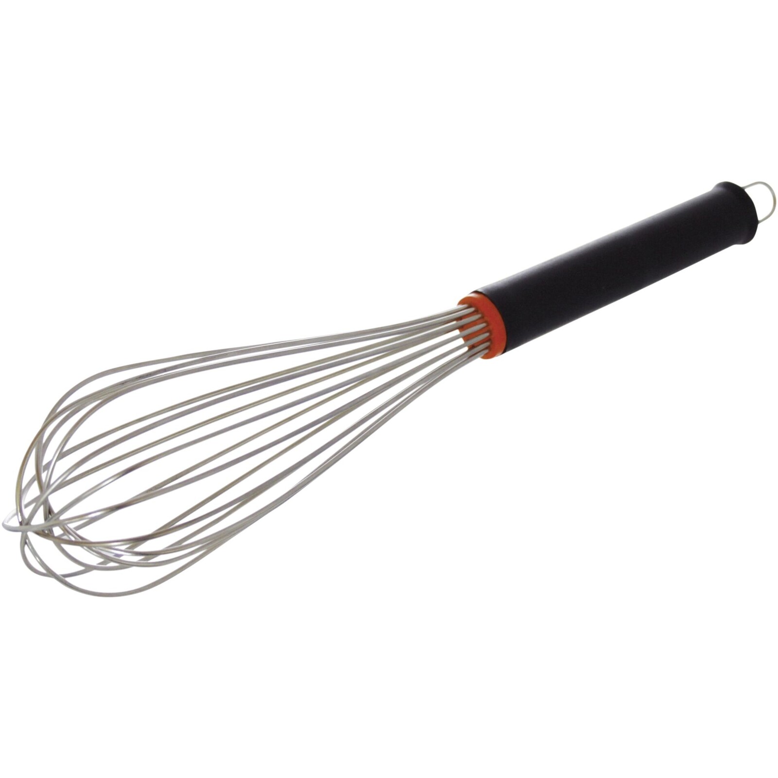 Rührbesen mit 16 Edelstahl-Drähten und schwarzem, thermoplastischen Griff mit Aufhängeöse. Hitzebeständig bis 200°C. Spülmaschinengeeignet!