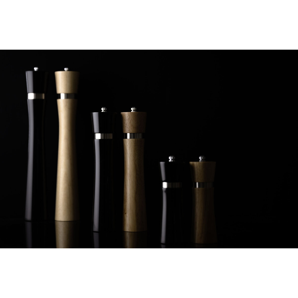 Salz- und Pfeffermühle in modernem Design aus poliertem und hochglanzlackiertem Holz. Das Mahlwerk der Mühle besteht aus Keramik. Im Lieferumfang enthalten ist ein Wechselknopf aus Metall, den man problemlos tauschen und die Mühle so - je nach Belieben - als Salz- oder Pfeffermühle einsetzen kann.
