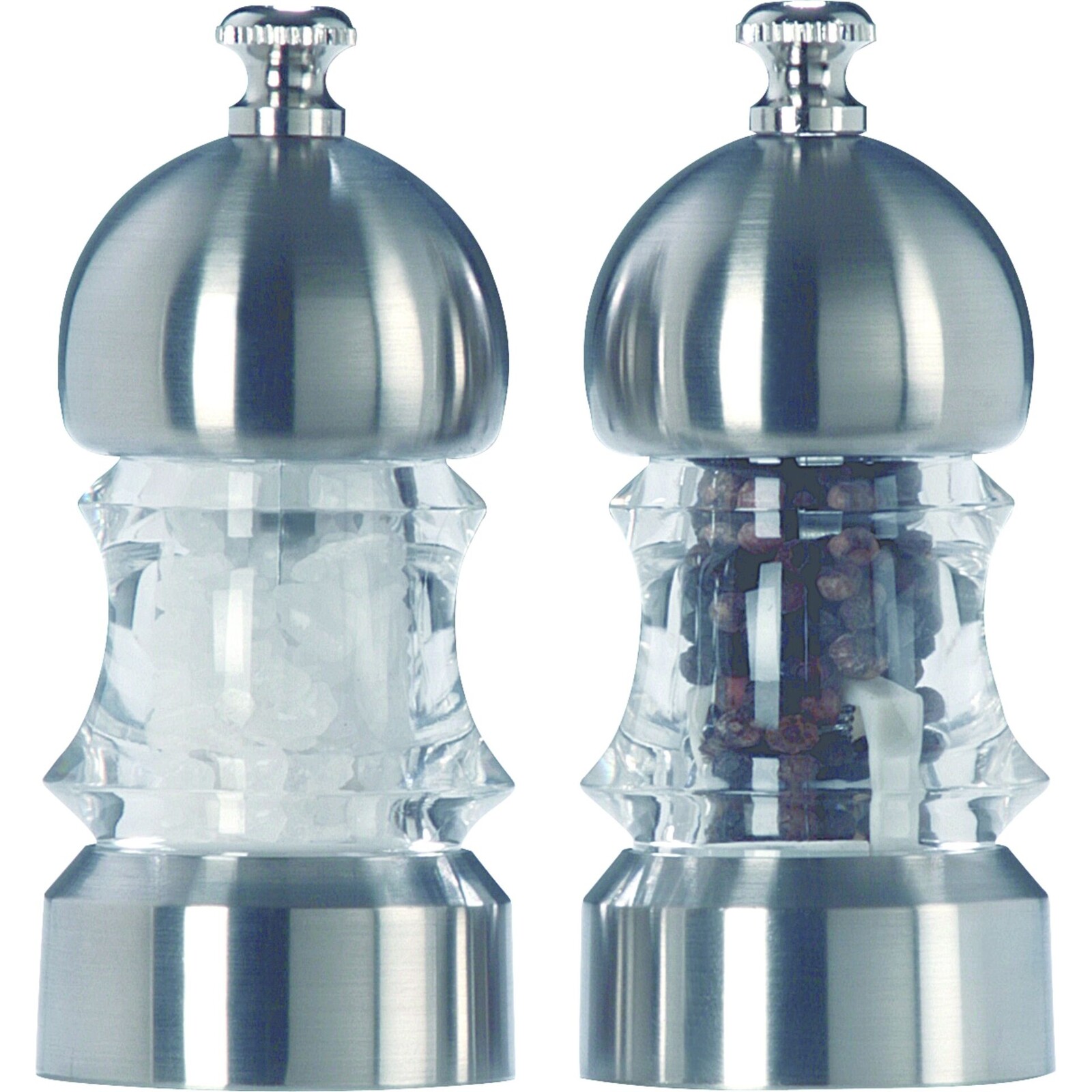 Salzmühle mit Polycarbonat-, Pfeffermühle mit Keramikmahlwerk.