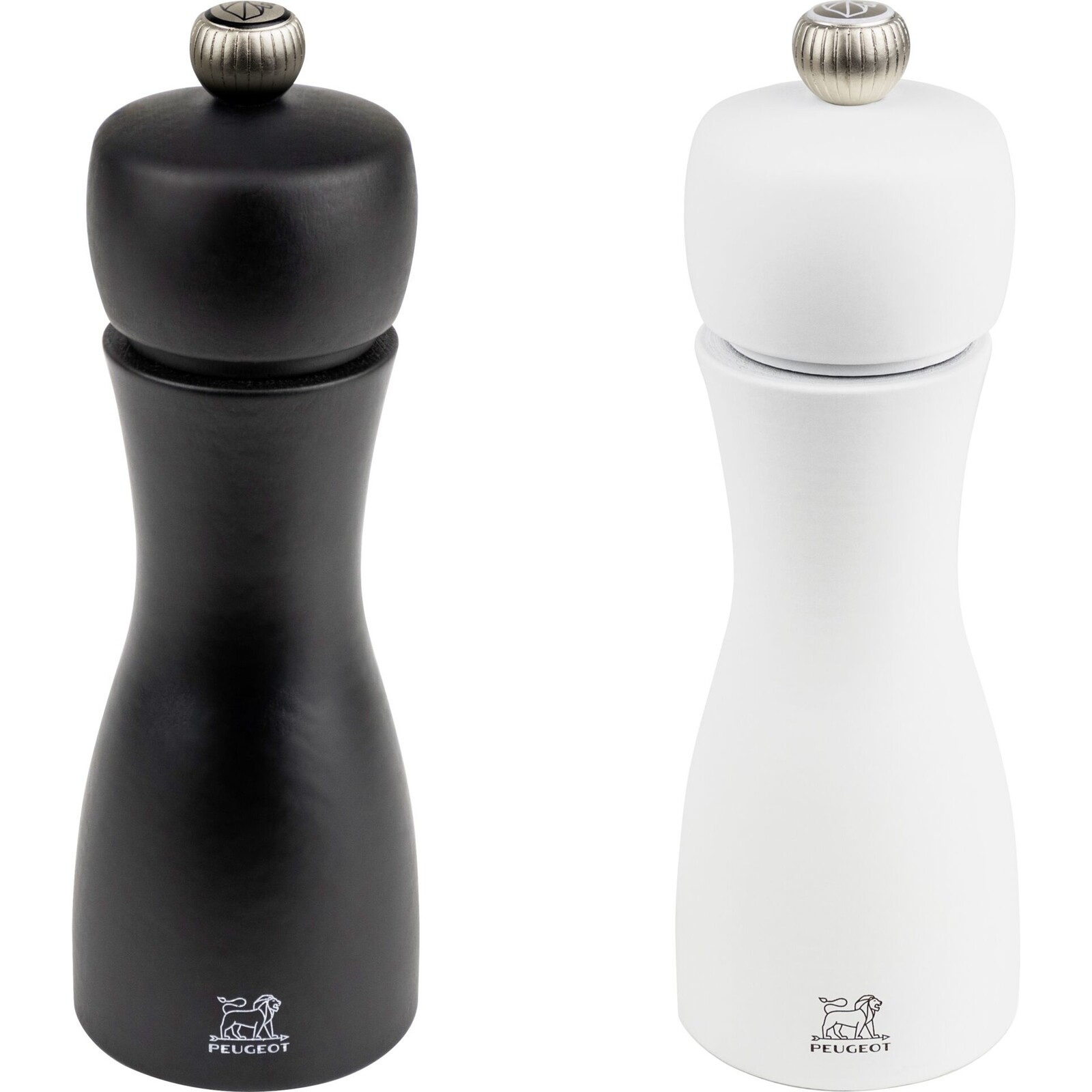 Das Tahiti-Duo, bestehend aus Pfeffer- & Salzmühle, überzeugt durch die schlanke, moderne Form. Die klassische Unterteilung in Schwarz und Weiß sorgt dafür, dass Pfeffer- & Salzmühle leicht zu unterscheiden sind und verleiht Ihrer Küche einen eleganten Look. Durch den Knopf der Gewürzmühlen können Sie den Mahlgrad auf Ihre persönliche Perfektion einstellen. Buchenholz. Mahlwerk (Pfeffermühle) aus Stahl, (Salzmühle) aus Edelstahl. Nicht spülmaschinengeeignet.