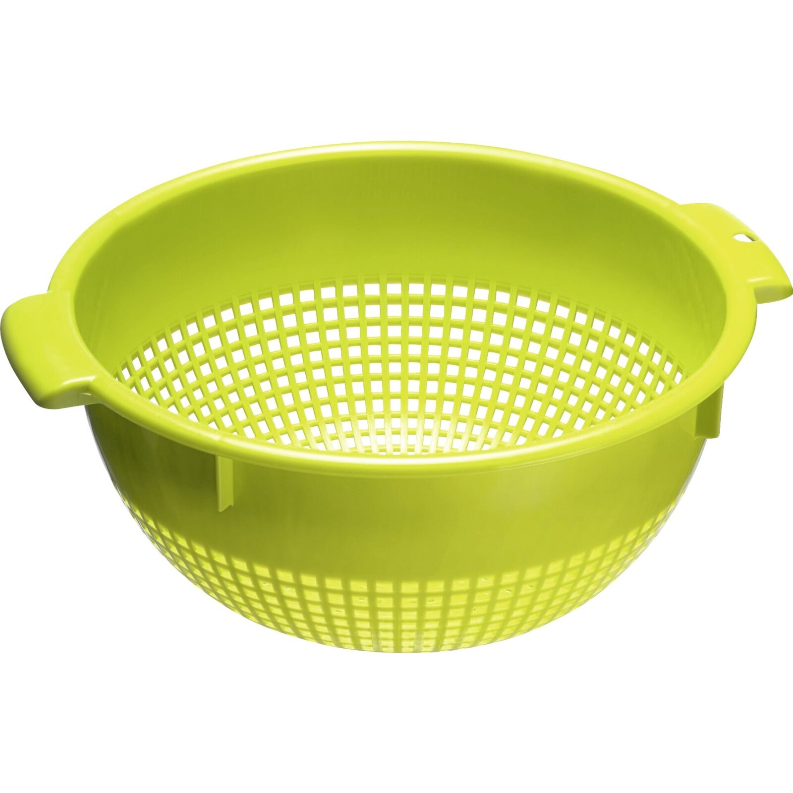 Material: PE = Polyethylen, BPA FREE, apfelgrün, 4 Aufsatzrastern sorgen dafür, dass der Seiher fest und ein Stück erhoben auf einem Ø 24cm Topf sitzt, spülmaschinengeeignet, Made in Germany.