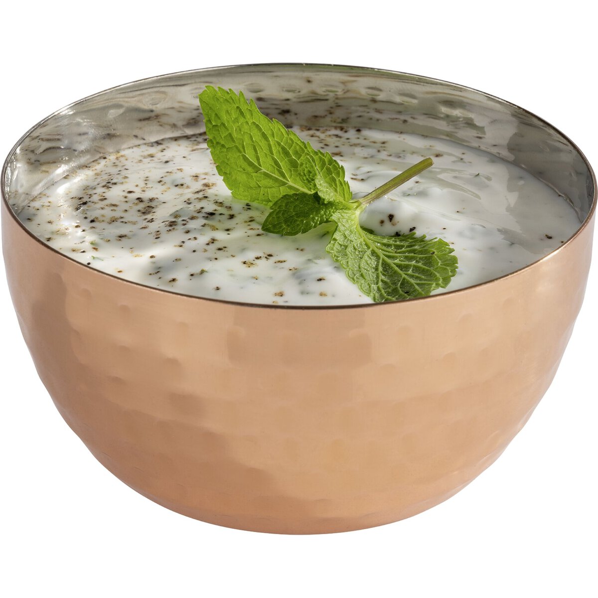 Edelstahl mit Kupferlook. Nicht spülmaschinengeeignet.