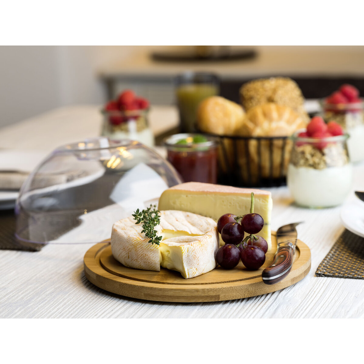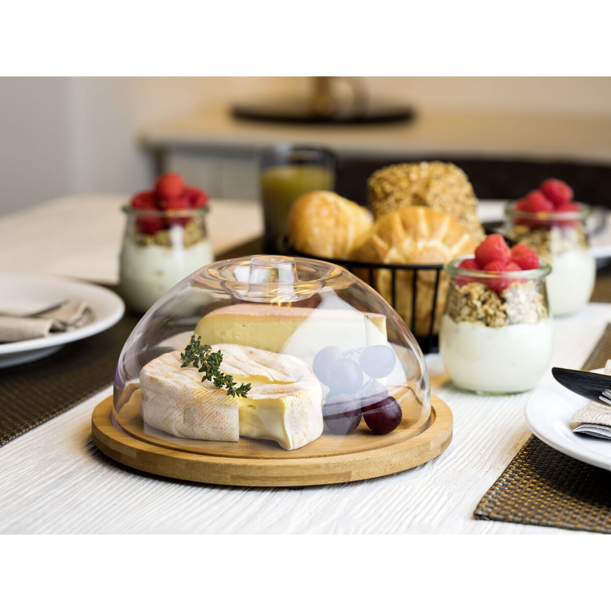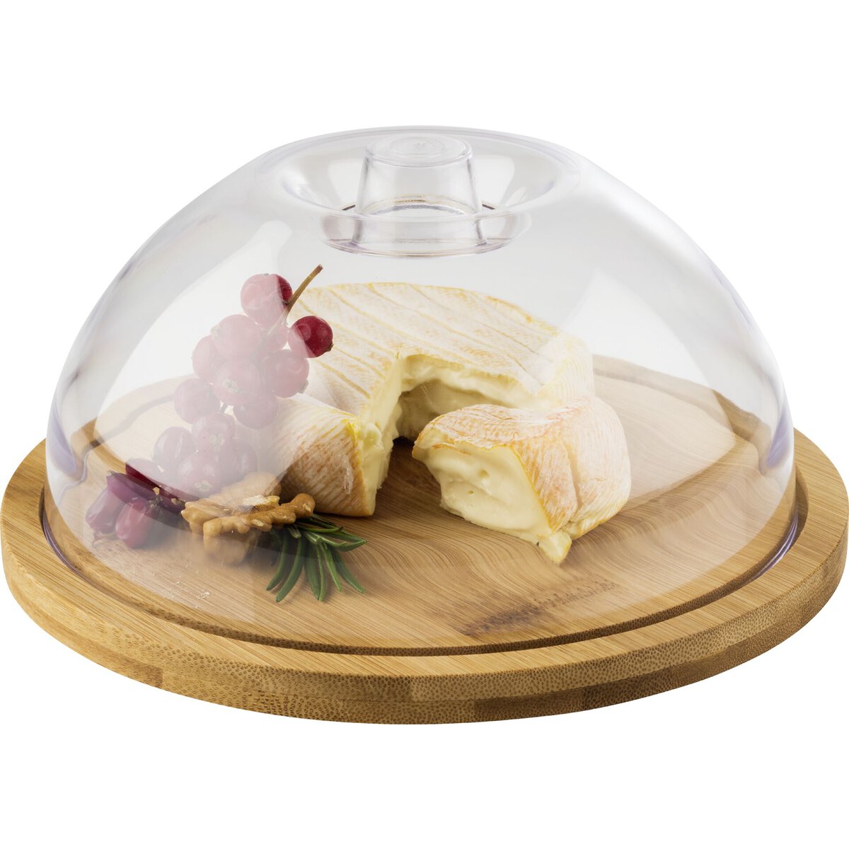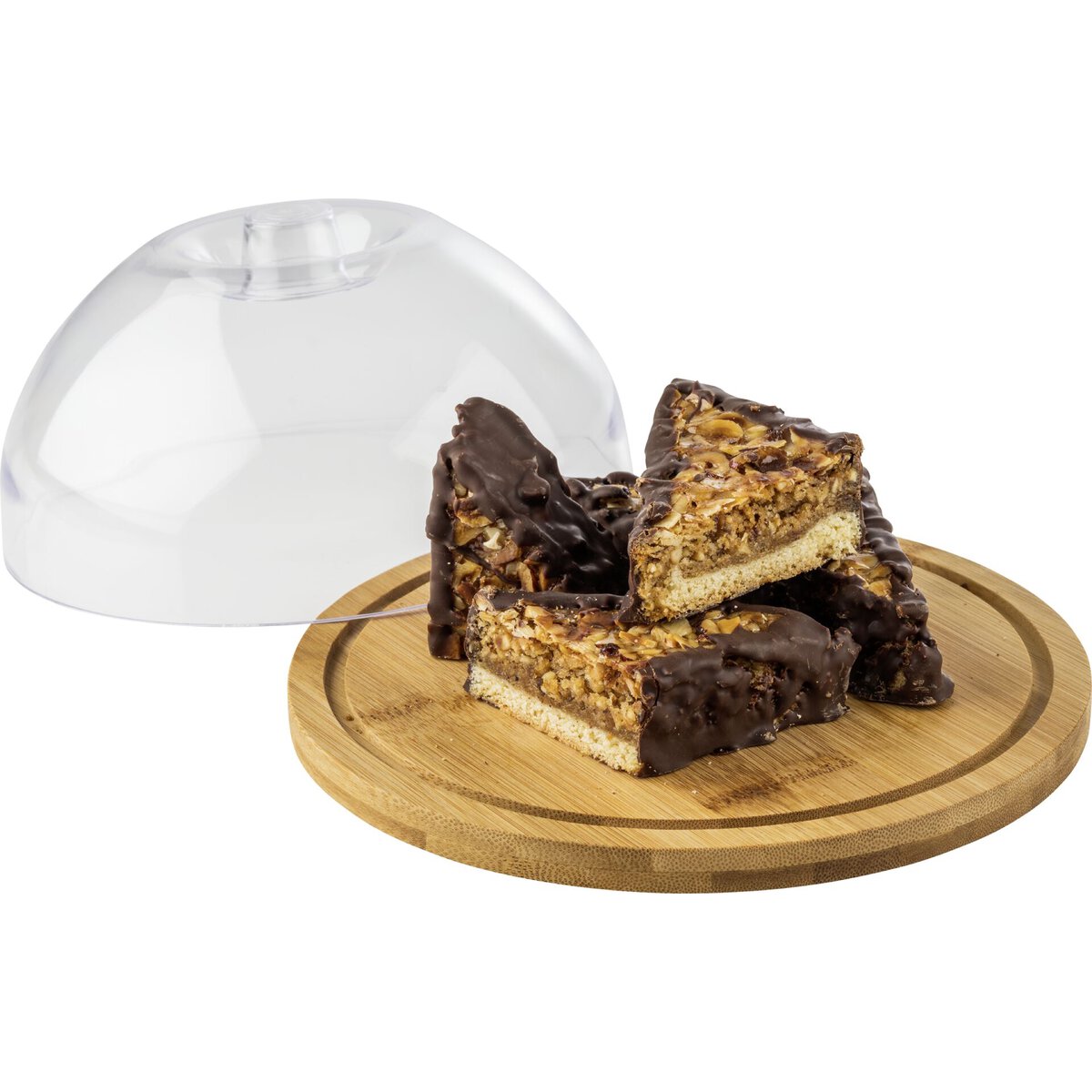 Tablett aus Bambus, ölimprägniert und feuchtigkeitsabweisend, Haube aus Polystyrol (spülmaschinengeeignet).