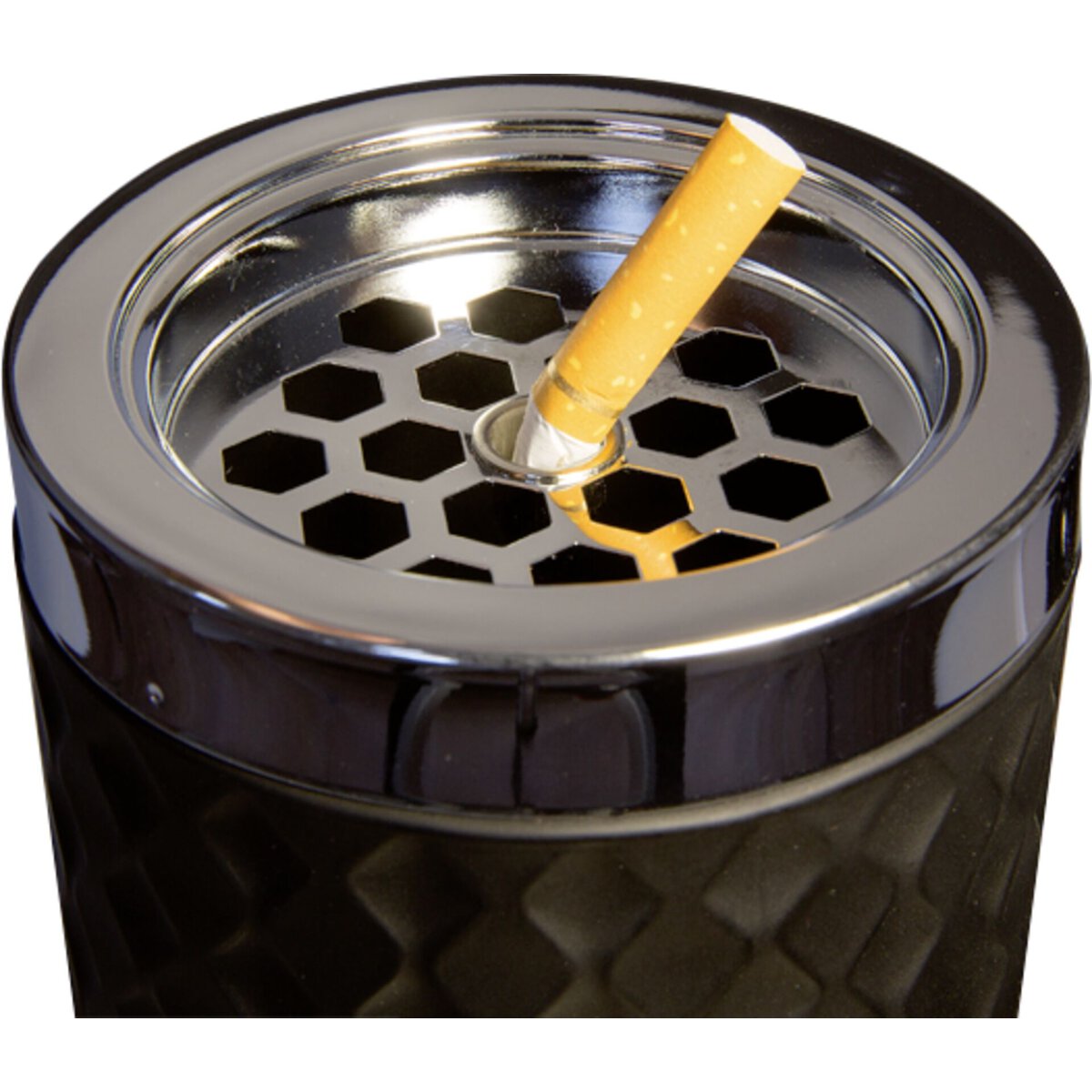 Metall verchromt, Glas gefrostet, mit Bajonettverschluss, sicheres Ausdrücken der Glut, stapelbar. Farbe: schwarz.