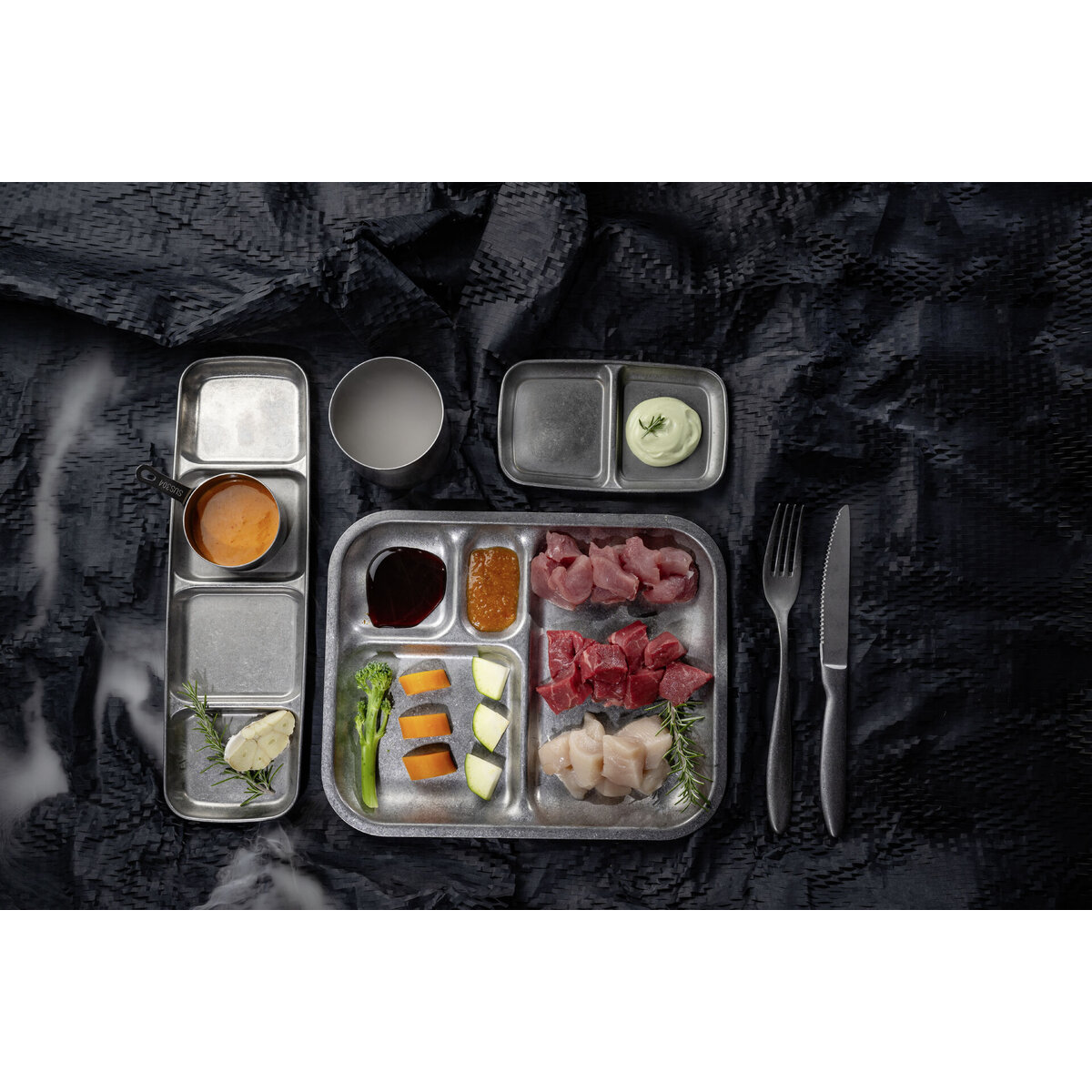 Entdecken Sie unsere hochwertigen Petitschalen der Serie "Yoko", gefertigt aus langlebigem rostfreiem Edelstahl. Perfekt für Gastronomie und Catering, bieten sie eine elegante Lösung für das Servieren von Dips, Saucen oder Beilagen. Die Schalen sind in verschiedenen Formen und Größen erhältlich – von dreieckig bis rechteckig und mit bis zu vier Fächern. Dank der spülmaschinenfesten Oberfläche sind sie besonders pflegeleicht und hygienisch. Erhältlich in klassischem Grau oder elegantem Gold, passen sie ideal zu jeder Tischdekoration. Spülmaschinengeeignet.